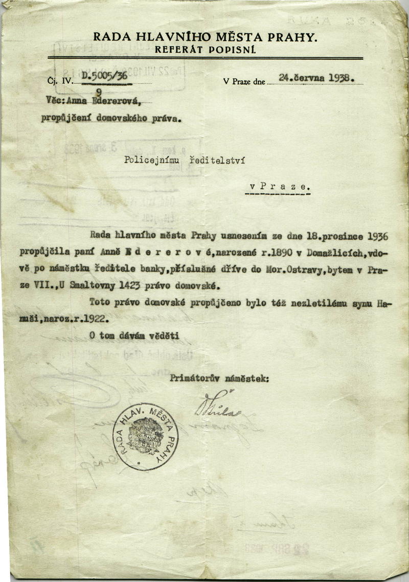 Edererová Anna: Propůjčení domovského práva