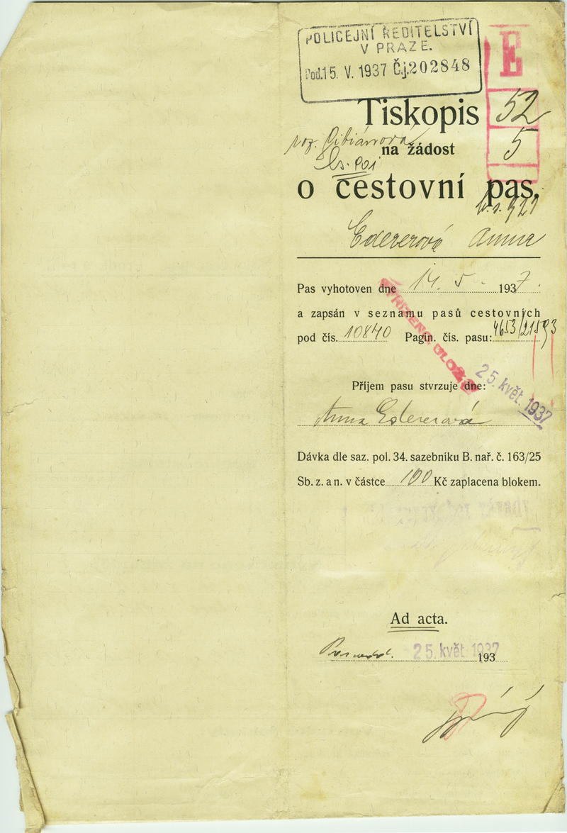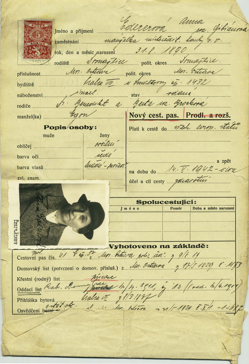 Edererová Anna: Žádost o vydání cestovního pasu