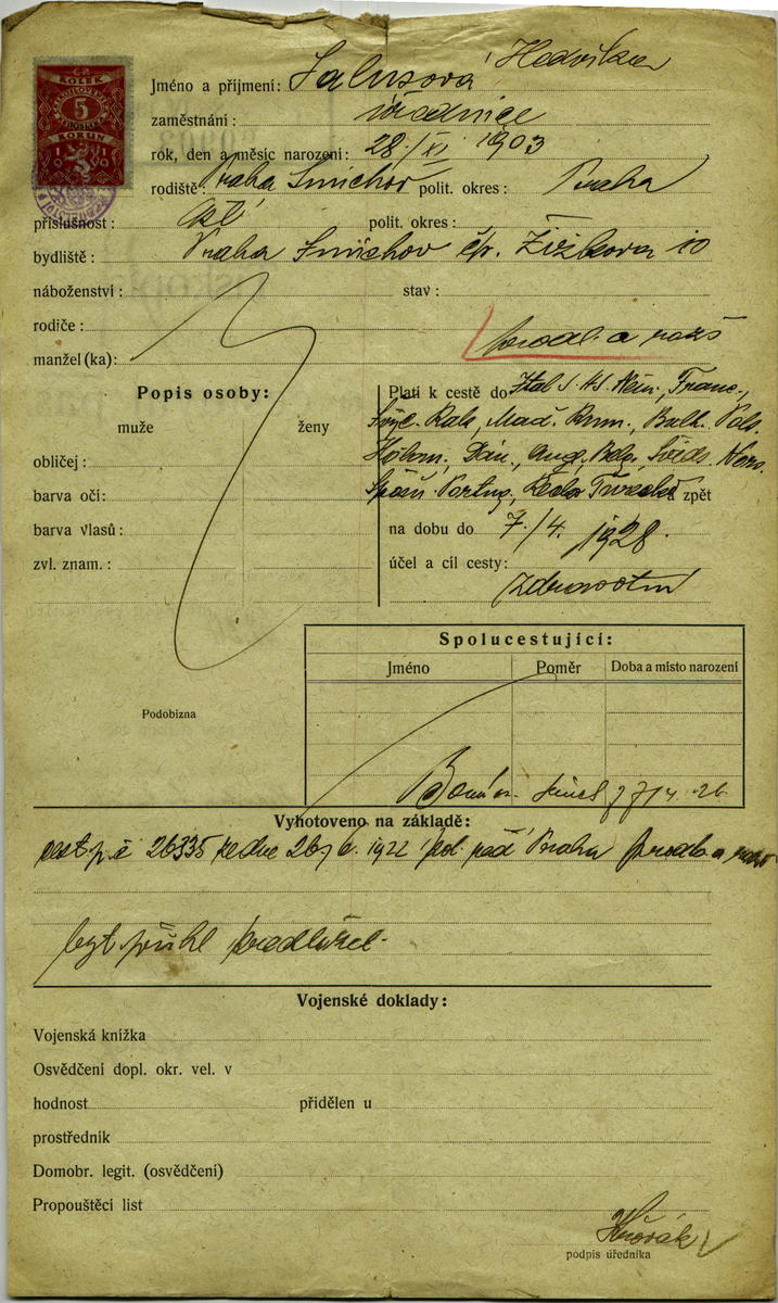 Dörflerová Hedda: Žádost o změnu v cestovním pasu