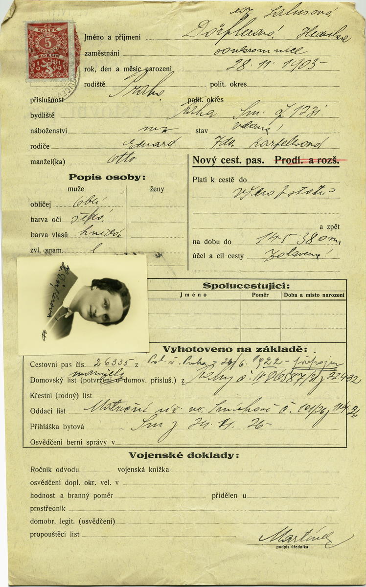 Dörflerová Hedda: Žádost o vydání cestovního pasu