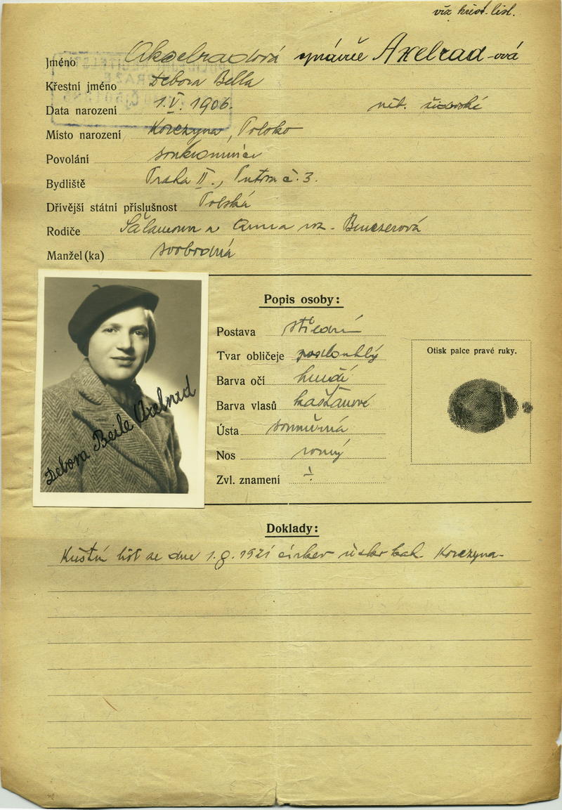 Axelradová Debora: Žádost o vydání občanské legitimace