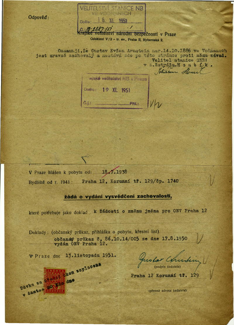 Arnstein Gustav: Vysvědčení zachovalosti