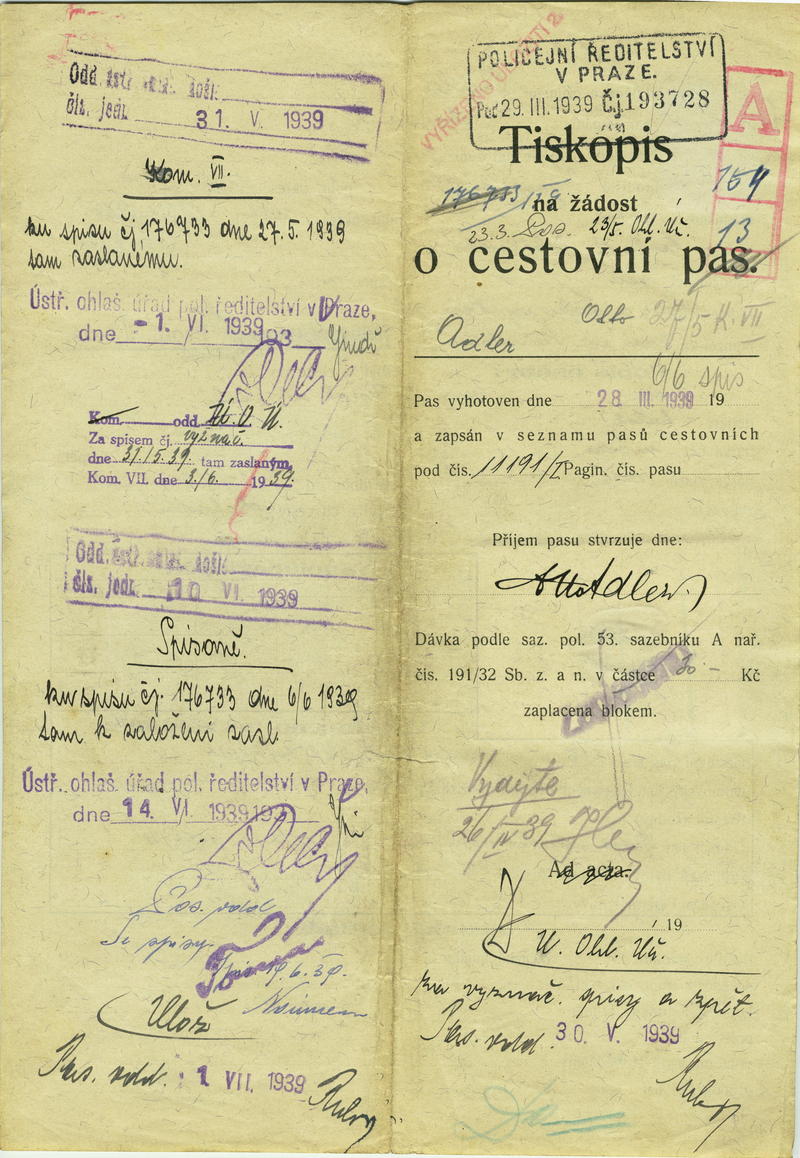 Adler Otto: Žádost o prodloužení a rozšíření cestovního pasu