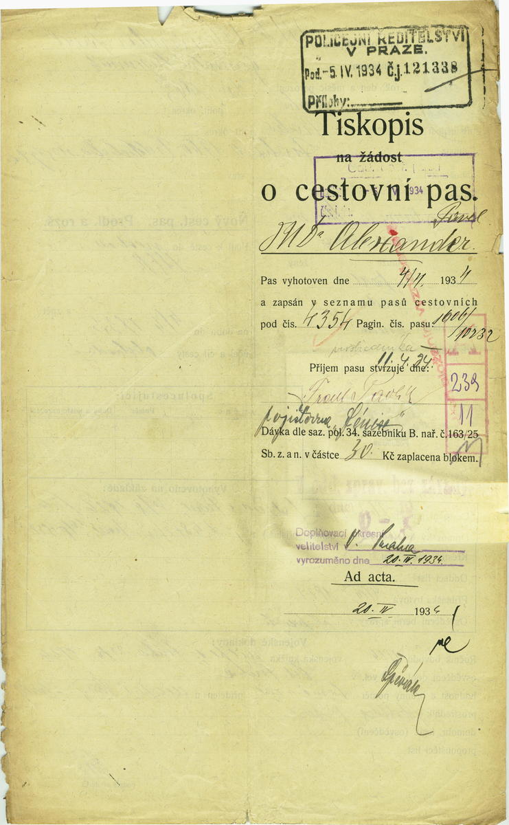 Alexander Pavel: Žádost o vydání cestovního pasu