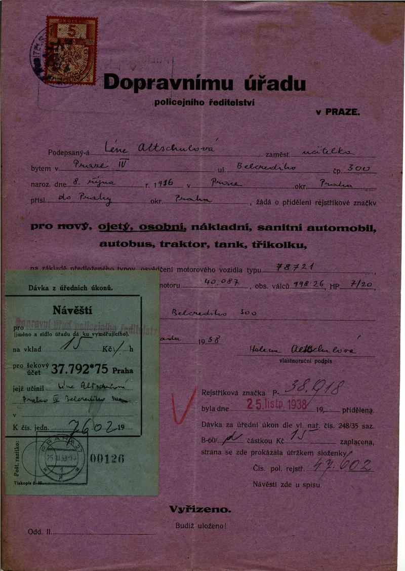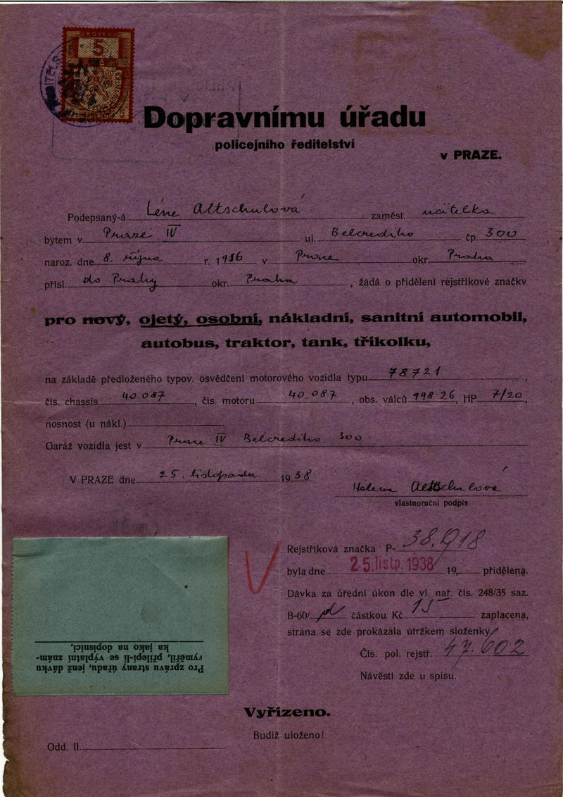 Altschulová Helena: Žádost o přidělení rejstříkové značky