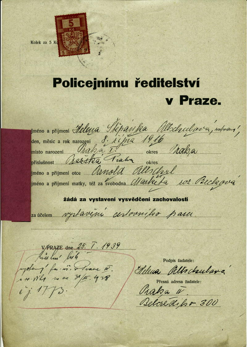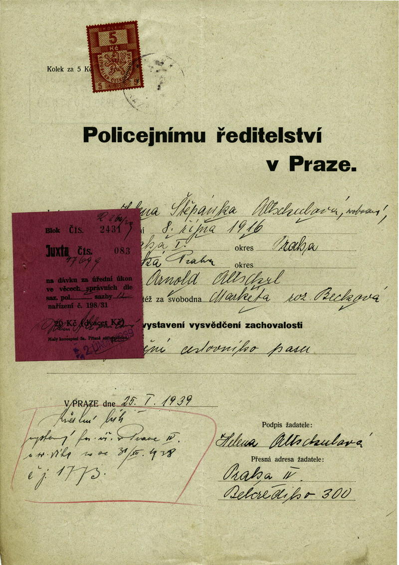 Altschulová Helena: Žádost o vystavení vysvědčení zachovalosti