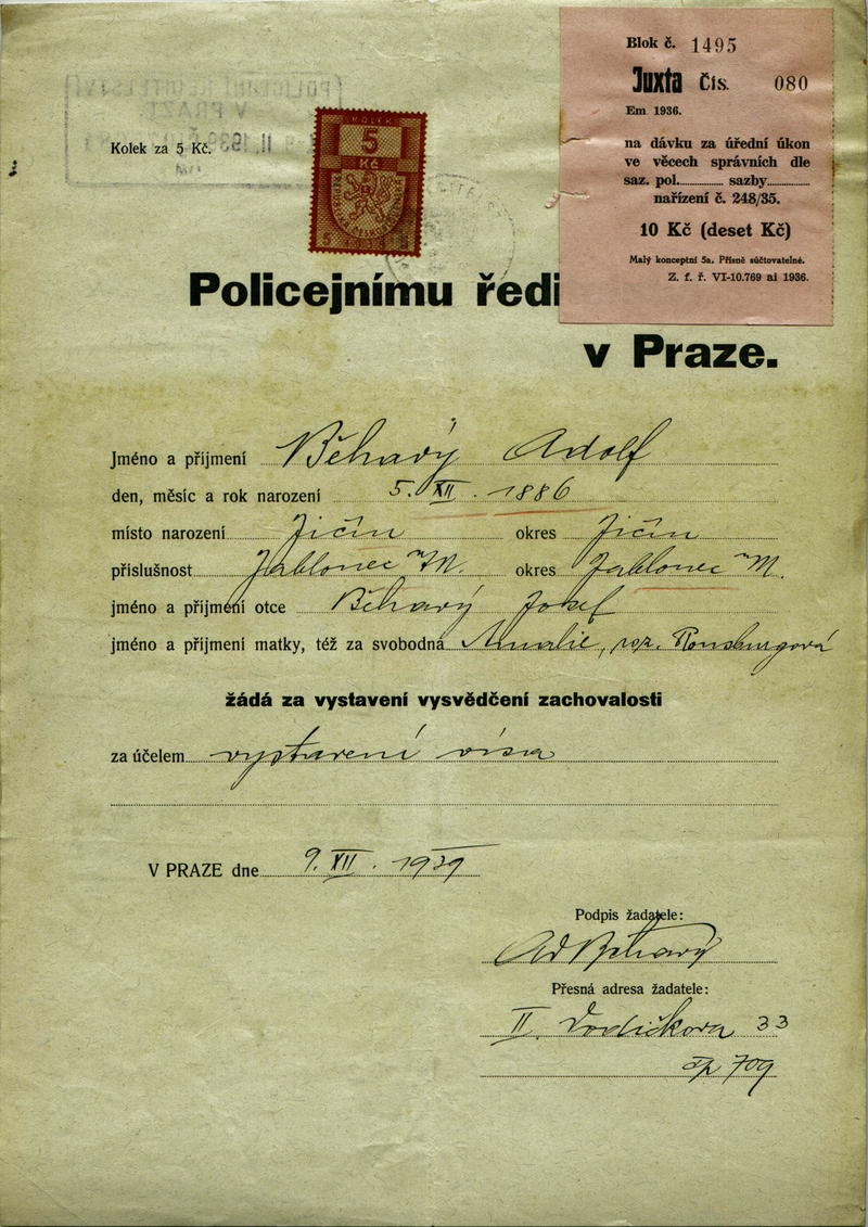 Běhavý Adolf: Žádost o vystavení vysvědčení zachovalosti