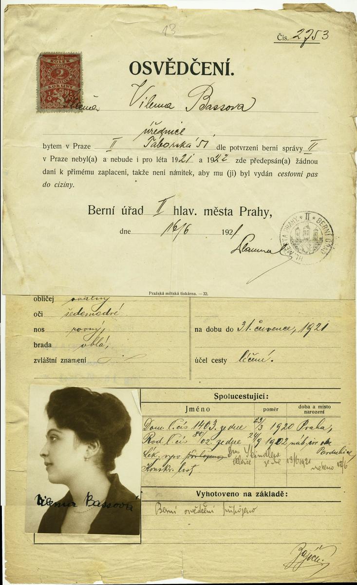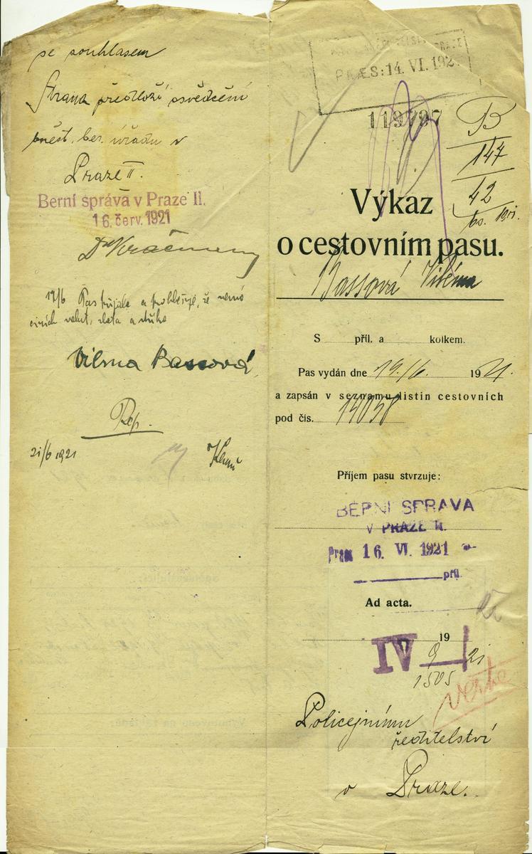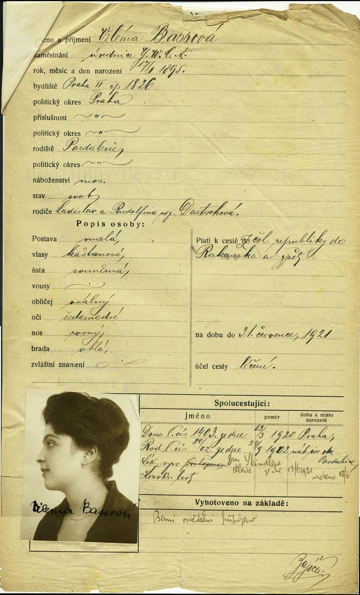 Bassová Vilma: Žádost o vydání cestovního pasu