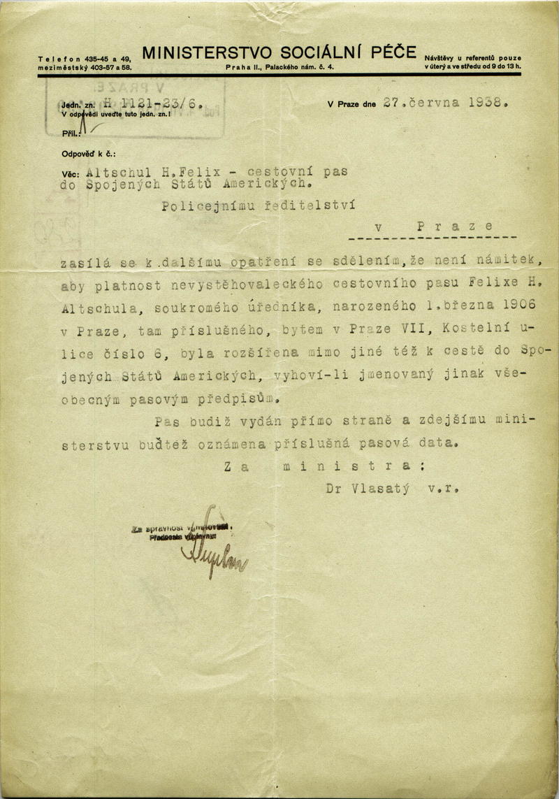 Altschul Felix: Povolení k vystavení cestovního pasu