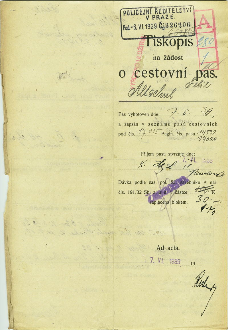 Národní archiv Praha > Policejní ředitelství v Praze > 1941-1950 > A > Altschul Felix