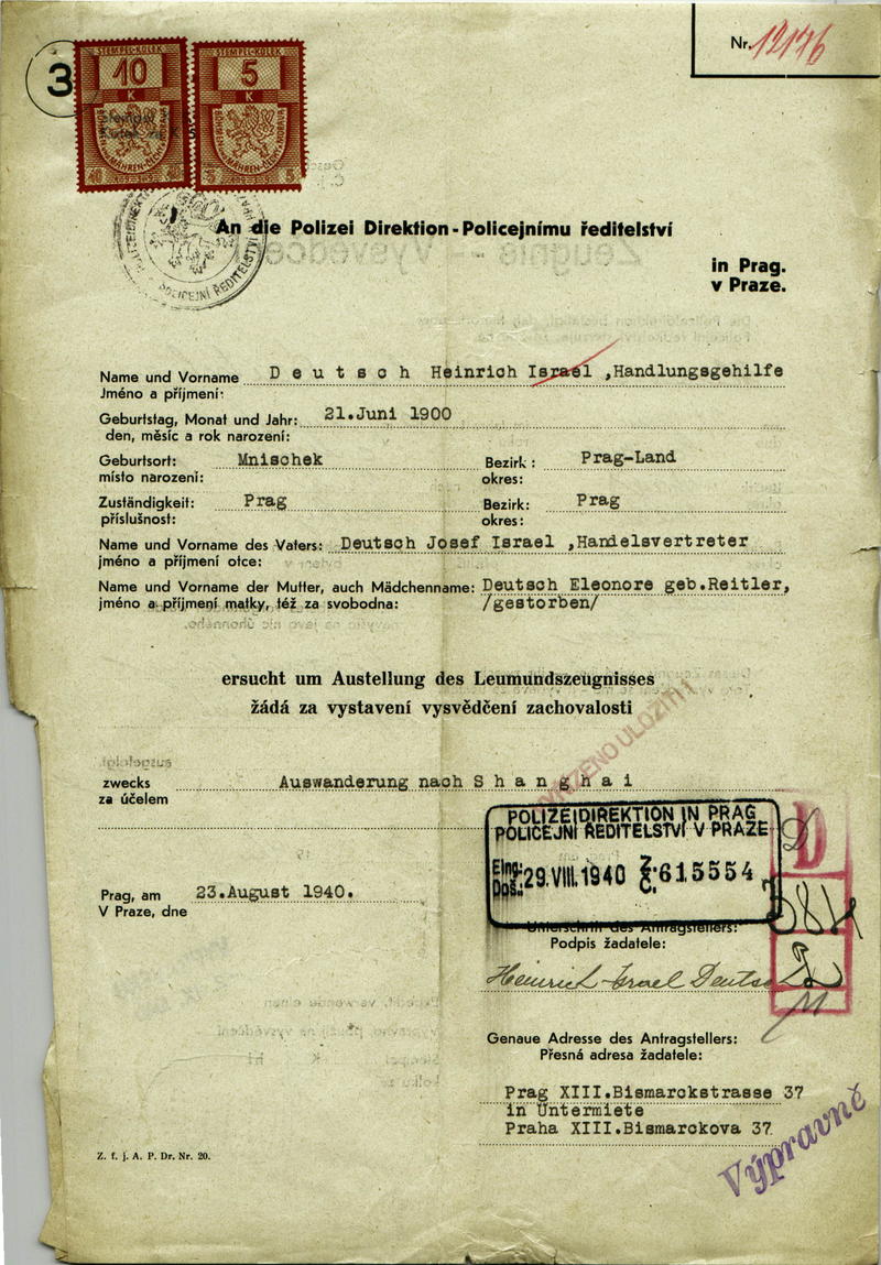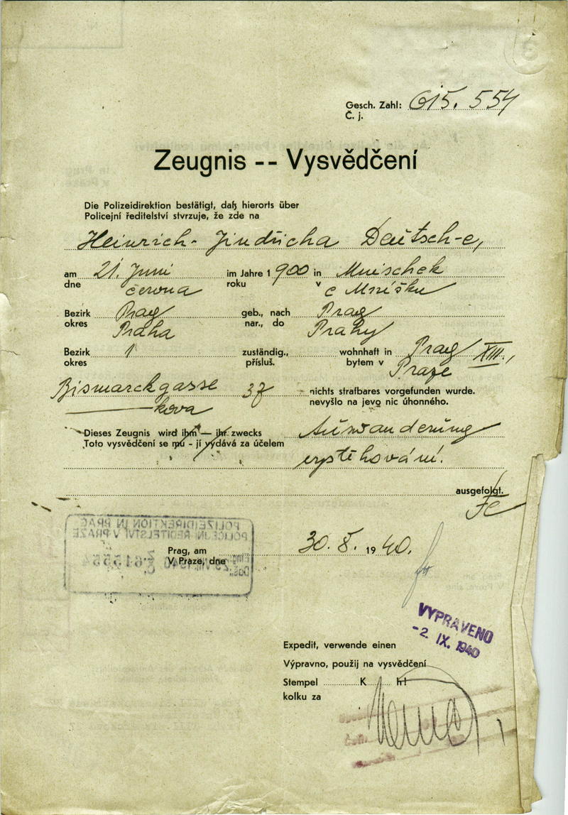 Deutsch Jindřich: Vysvědčení zachovalosti