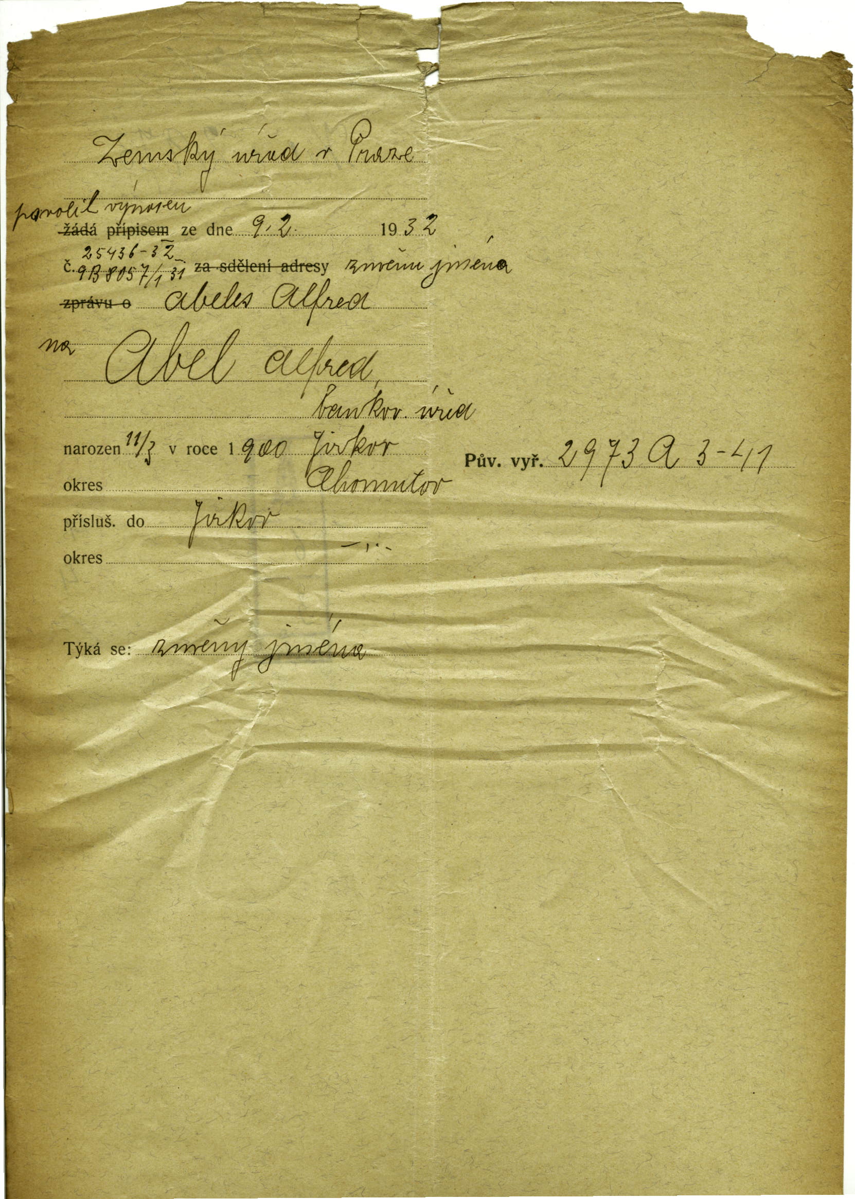 Abel Alfréd: Změna jména