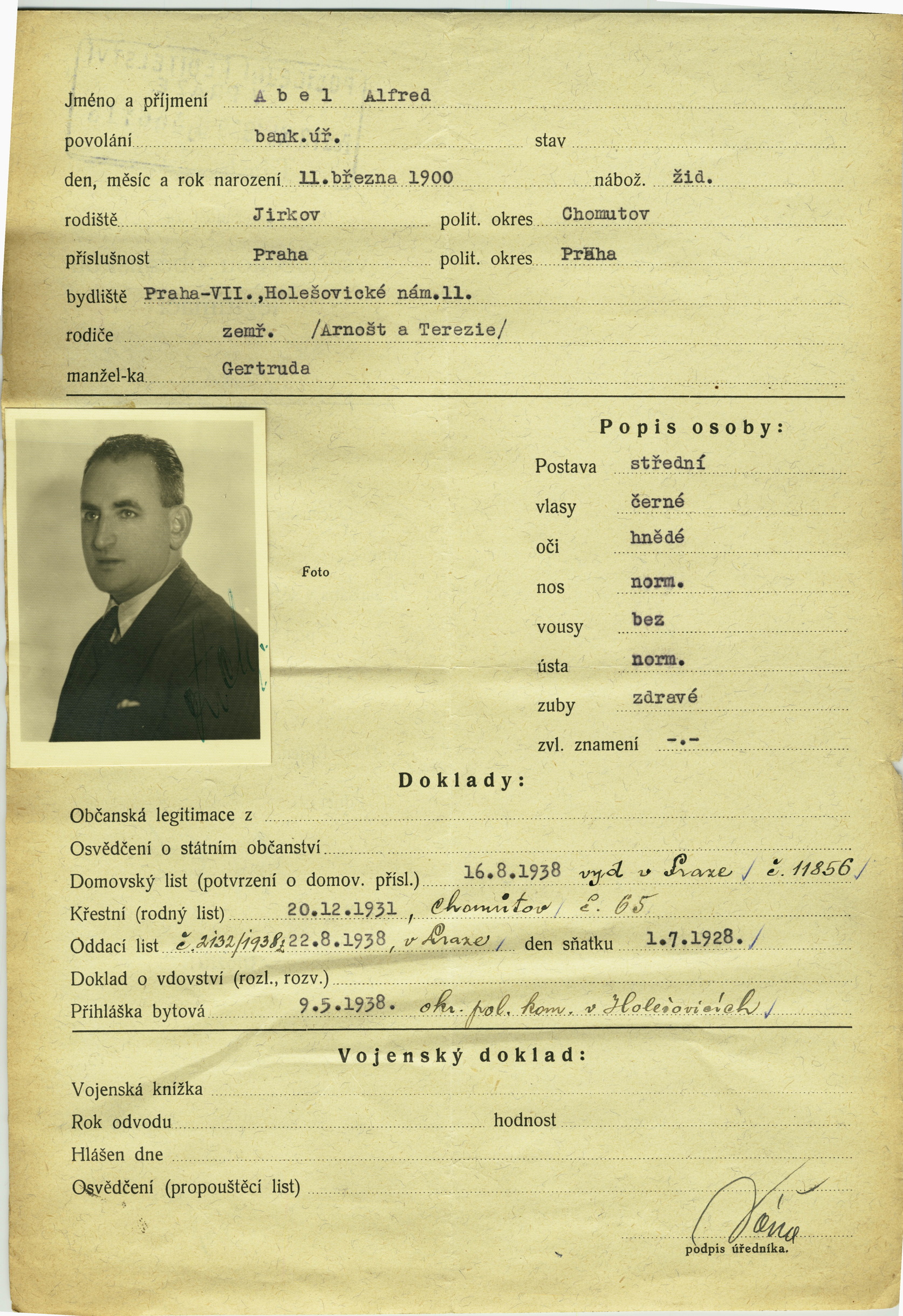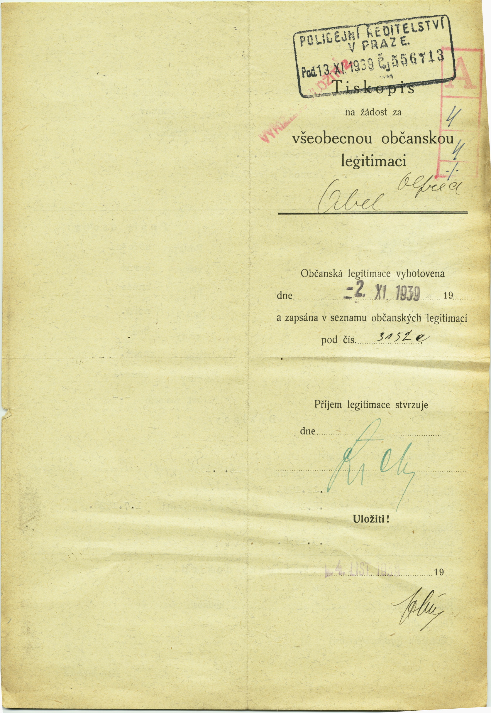 Abel Alfréd: Žádost o vydání občanské legitimace