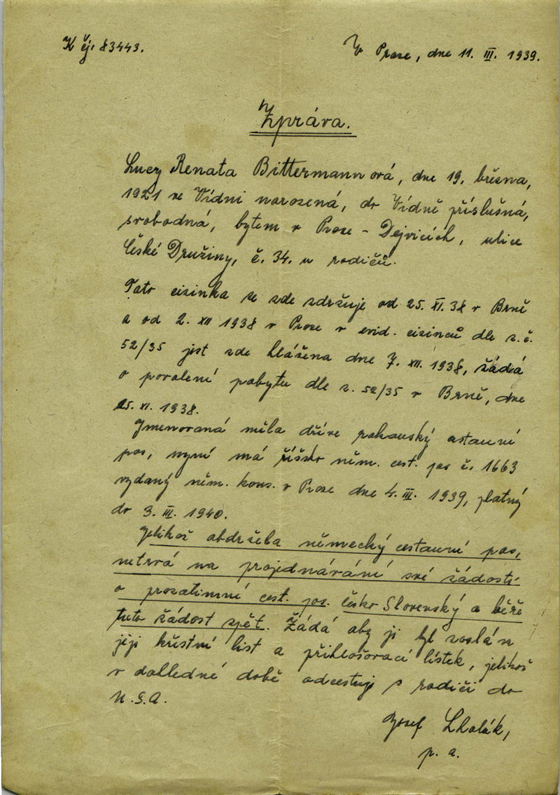 Bittermannová Lucy Renata: Šetření k žádosti o vydání cestovního pasu