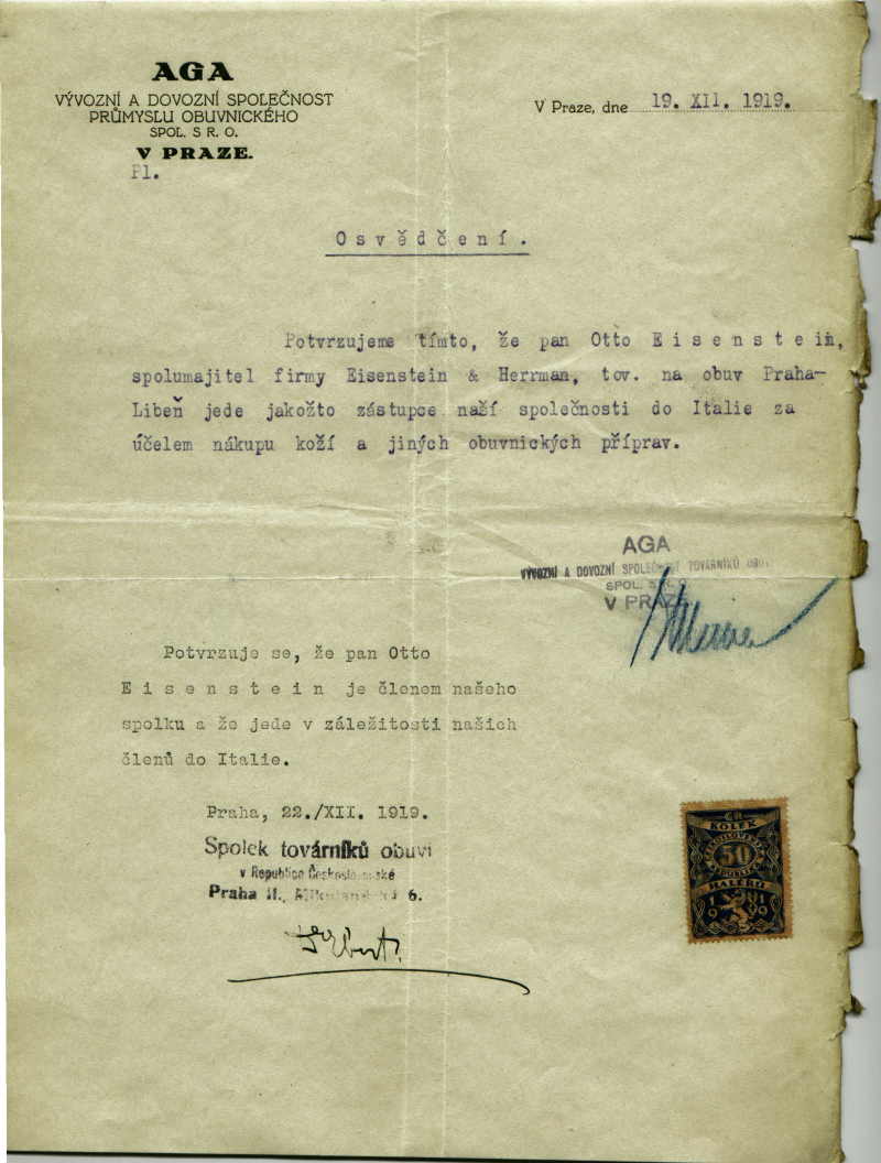 Eisenstein Otto: Potvrzení k žádosti o vydání cestovního pasu