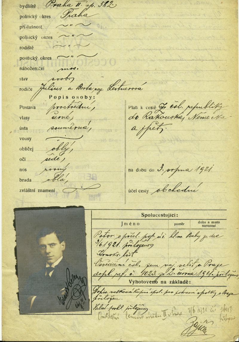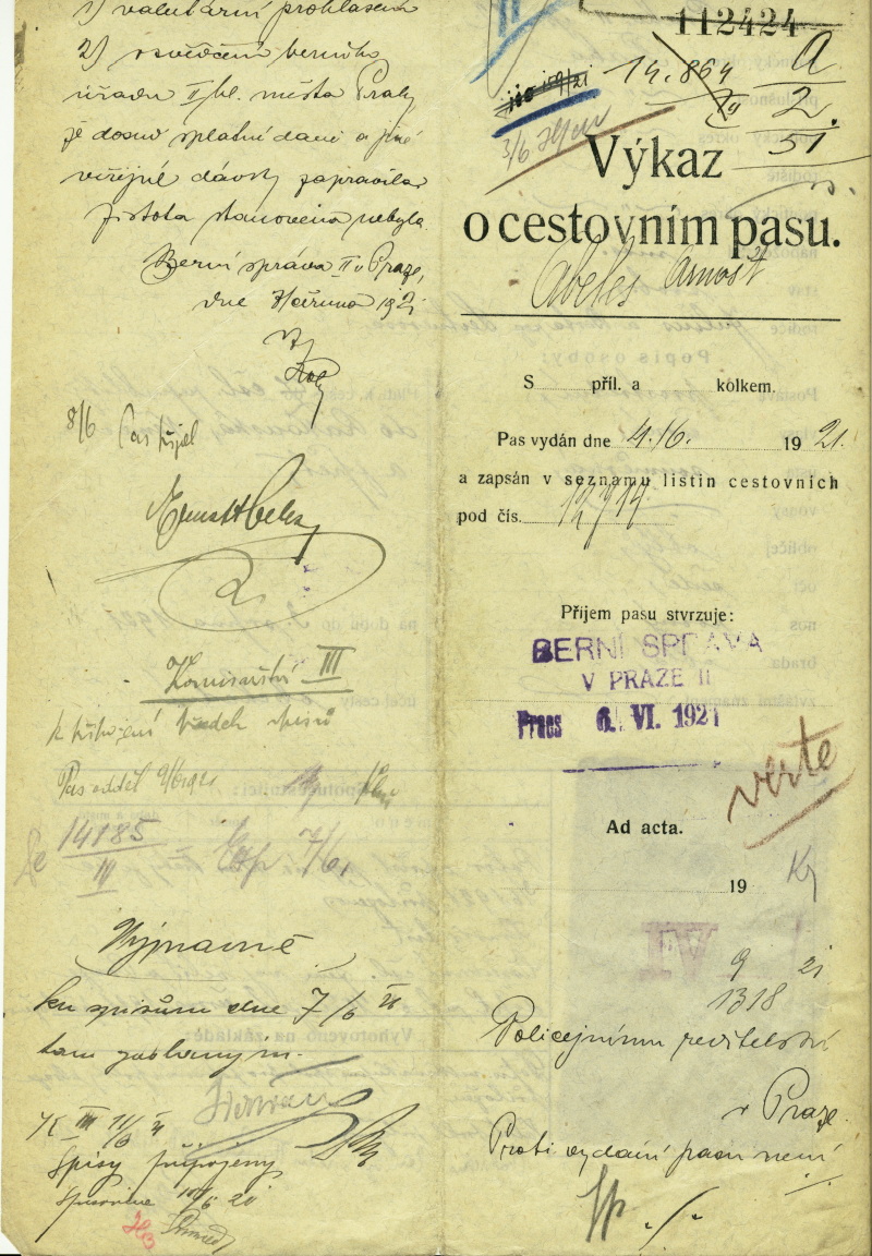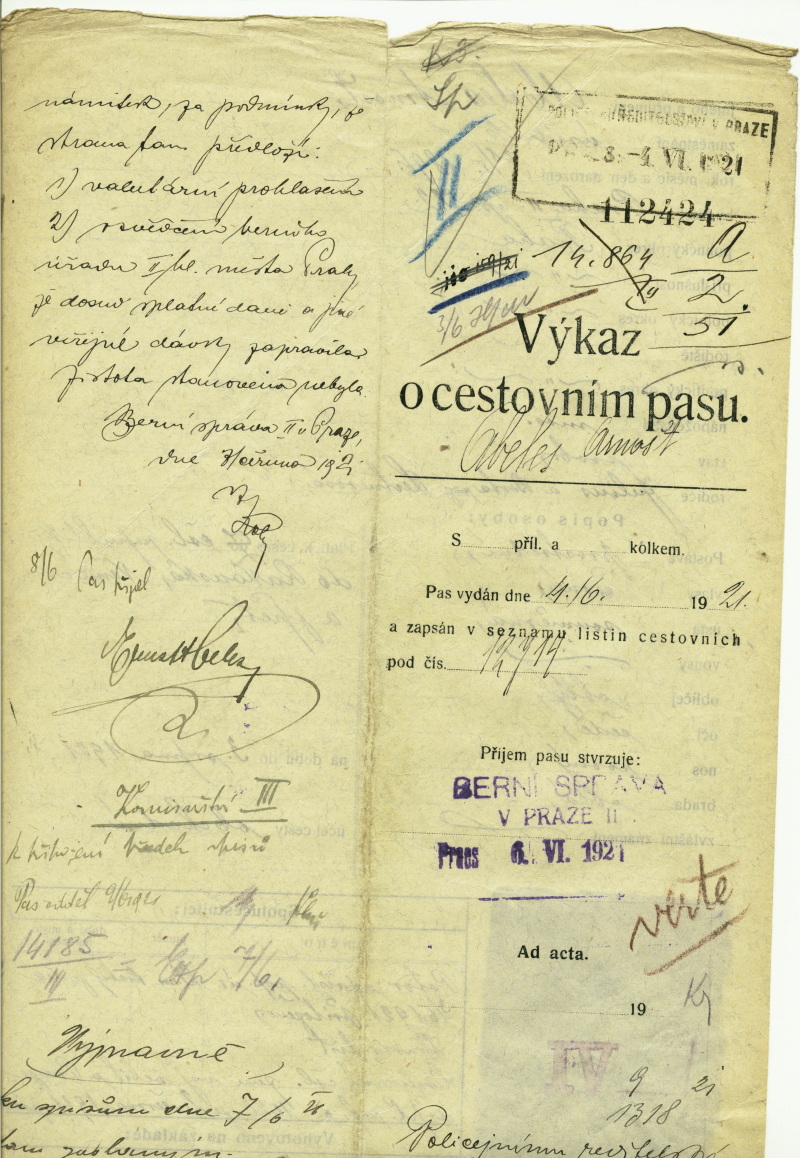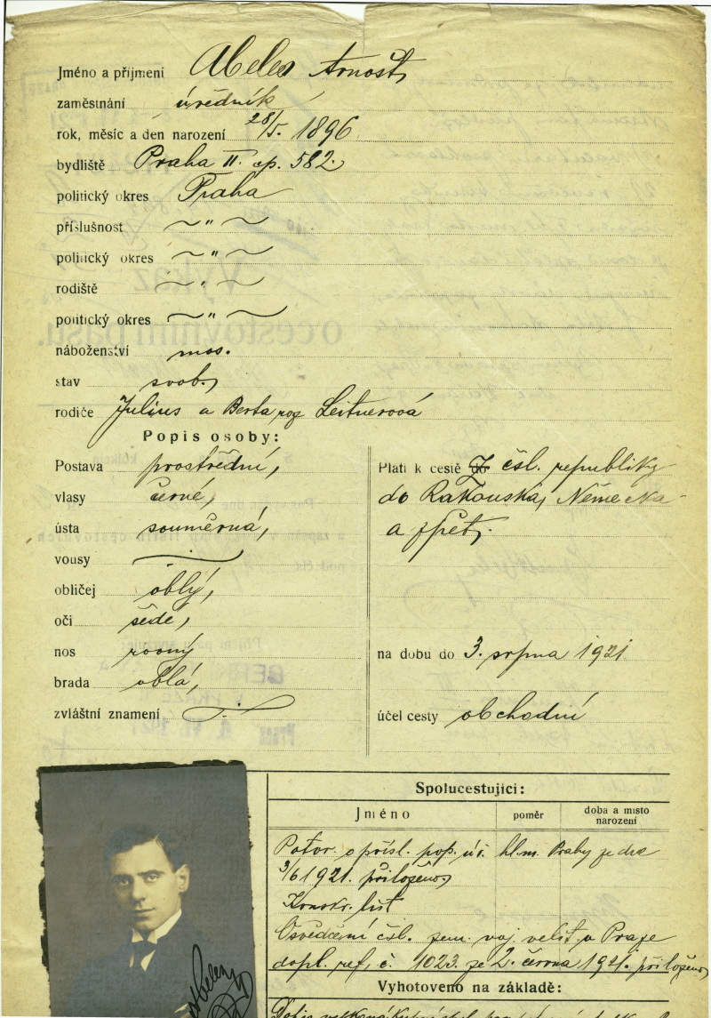 Auer Arnošt: Žádost o vydání cestovního pasu