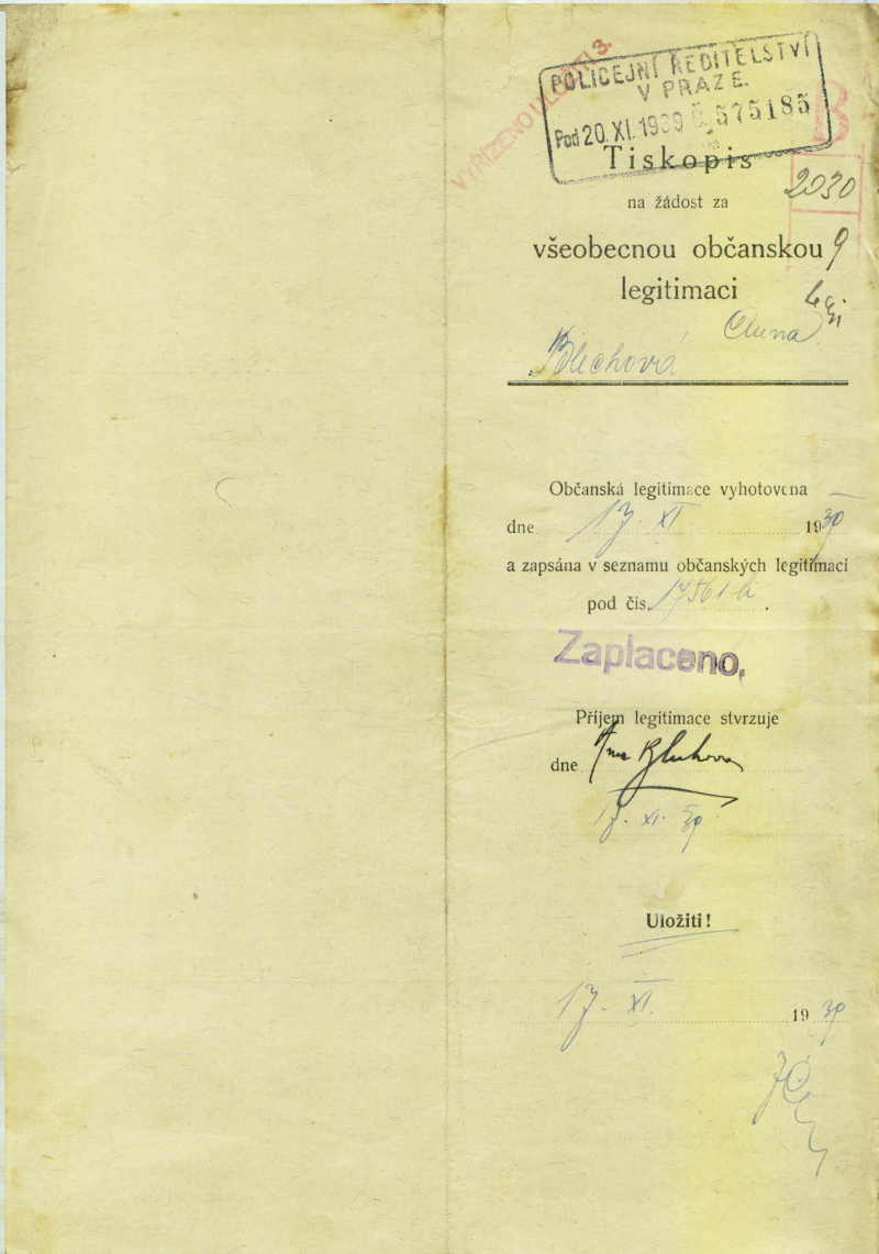 Blechová Anna: Žádost o vydání občanské legitimace