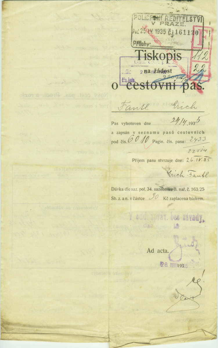 Národní archiv Praha > Policejní ředitelství v Praze > 1931-1940 > F > Fantl Erich