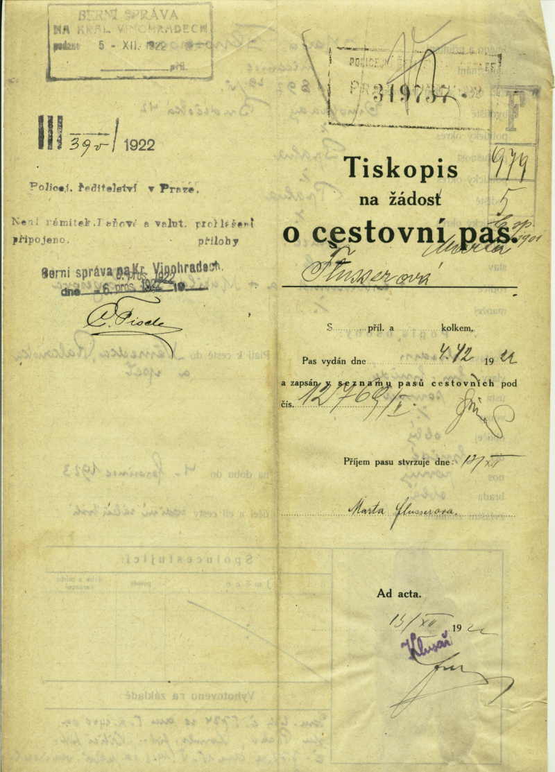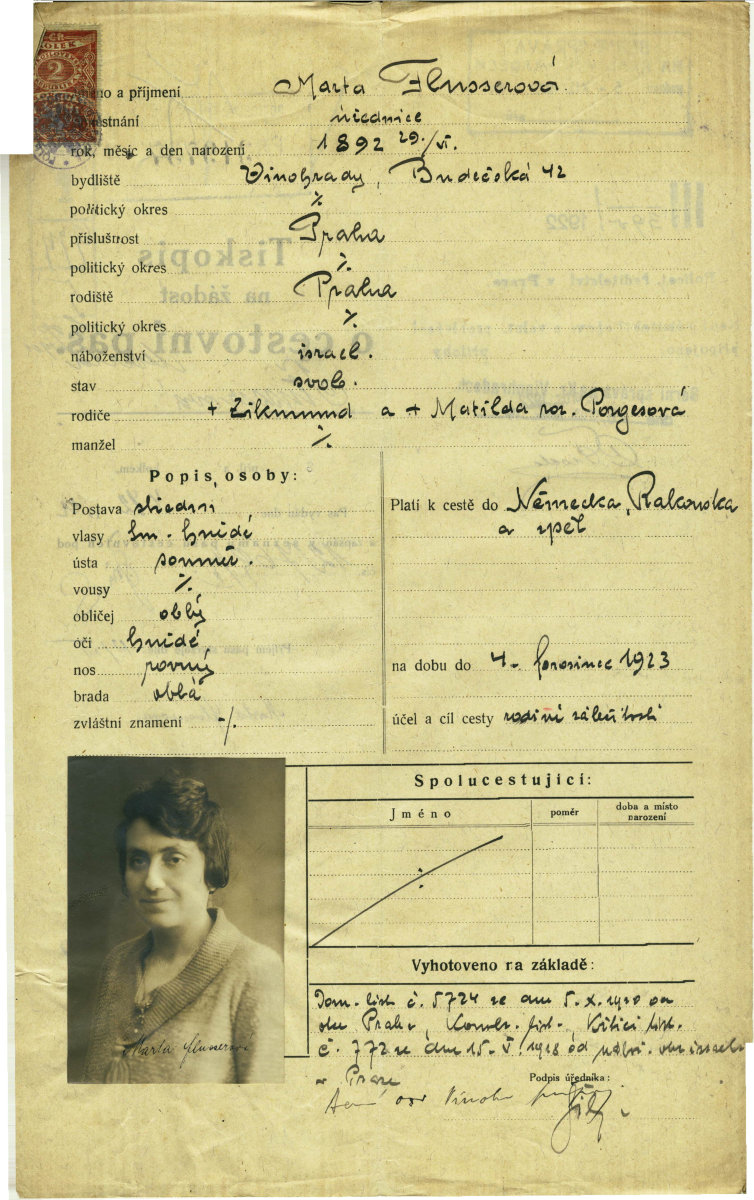 Flusserová Marta: Žádost o vydání cestovního pasu