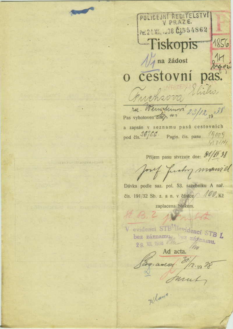 Fuchsová Ela: Žádost o vydání cestovního pasu
