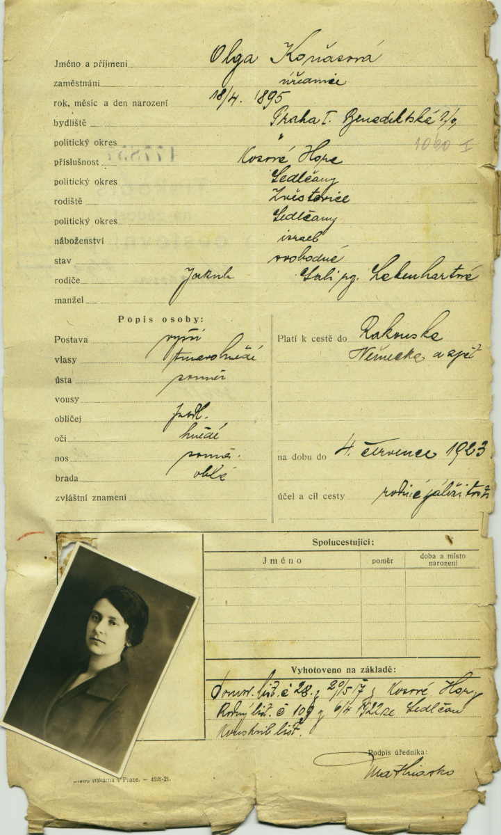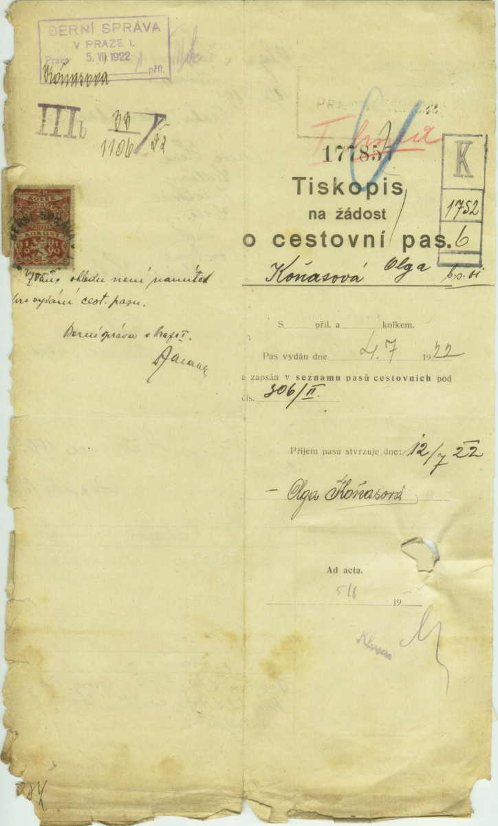 Franklová Olga: Žádost o vydání cestovního pasu