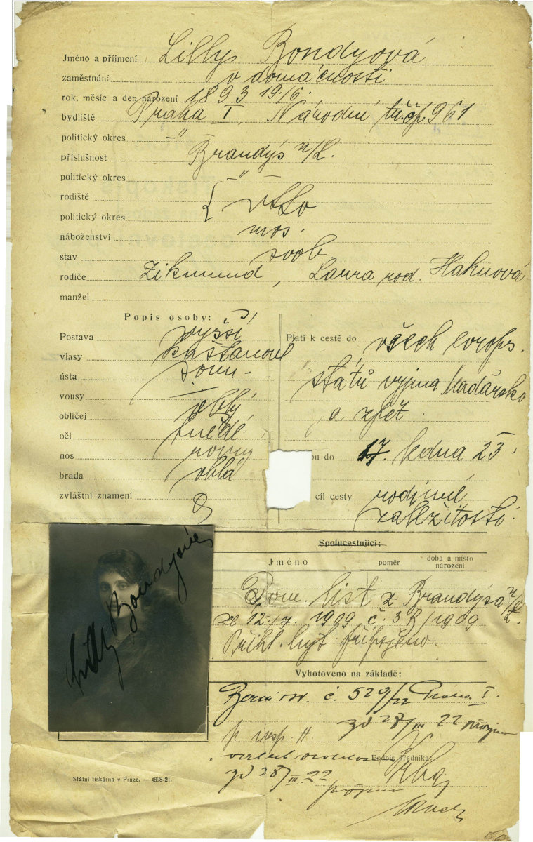 Frischerová Lily: Žádost o vydání cestovního pasu