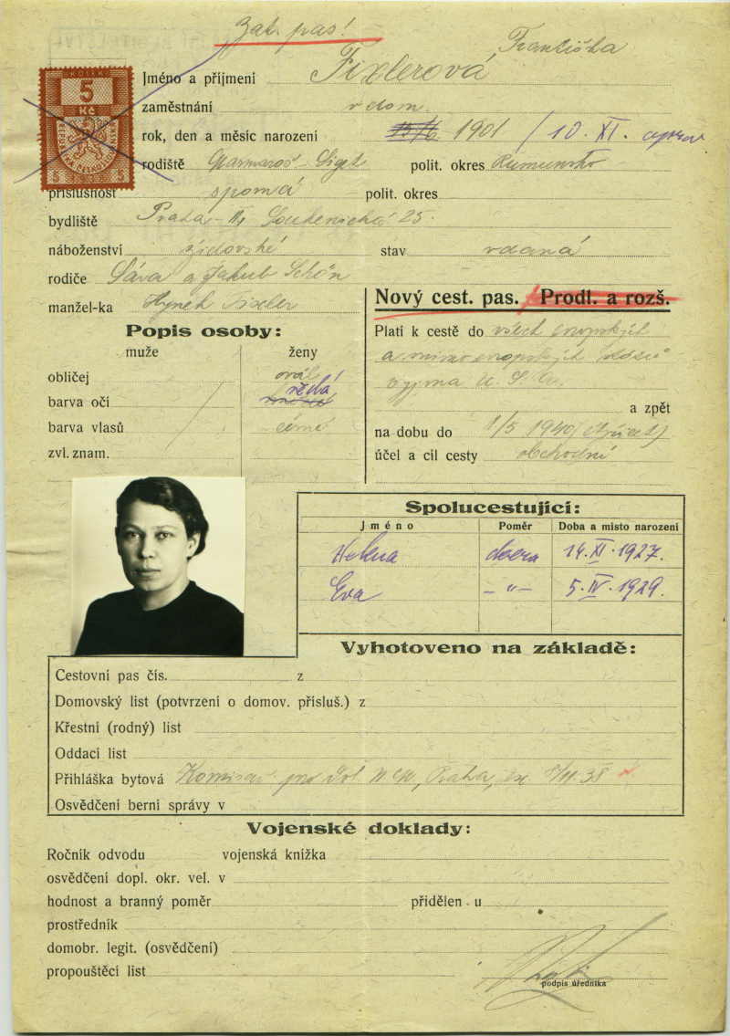 Fixlerová Fáni: Žádost o vydání cestovního pasu