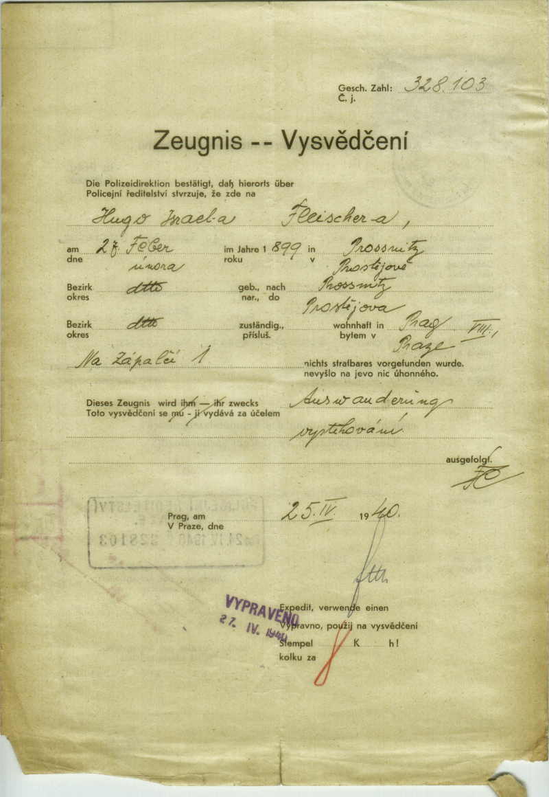 Fleischer Hugo: Vysvědčení zachovalosti