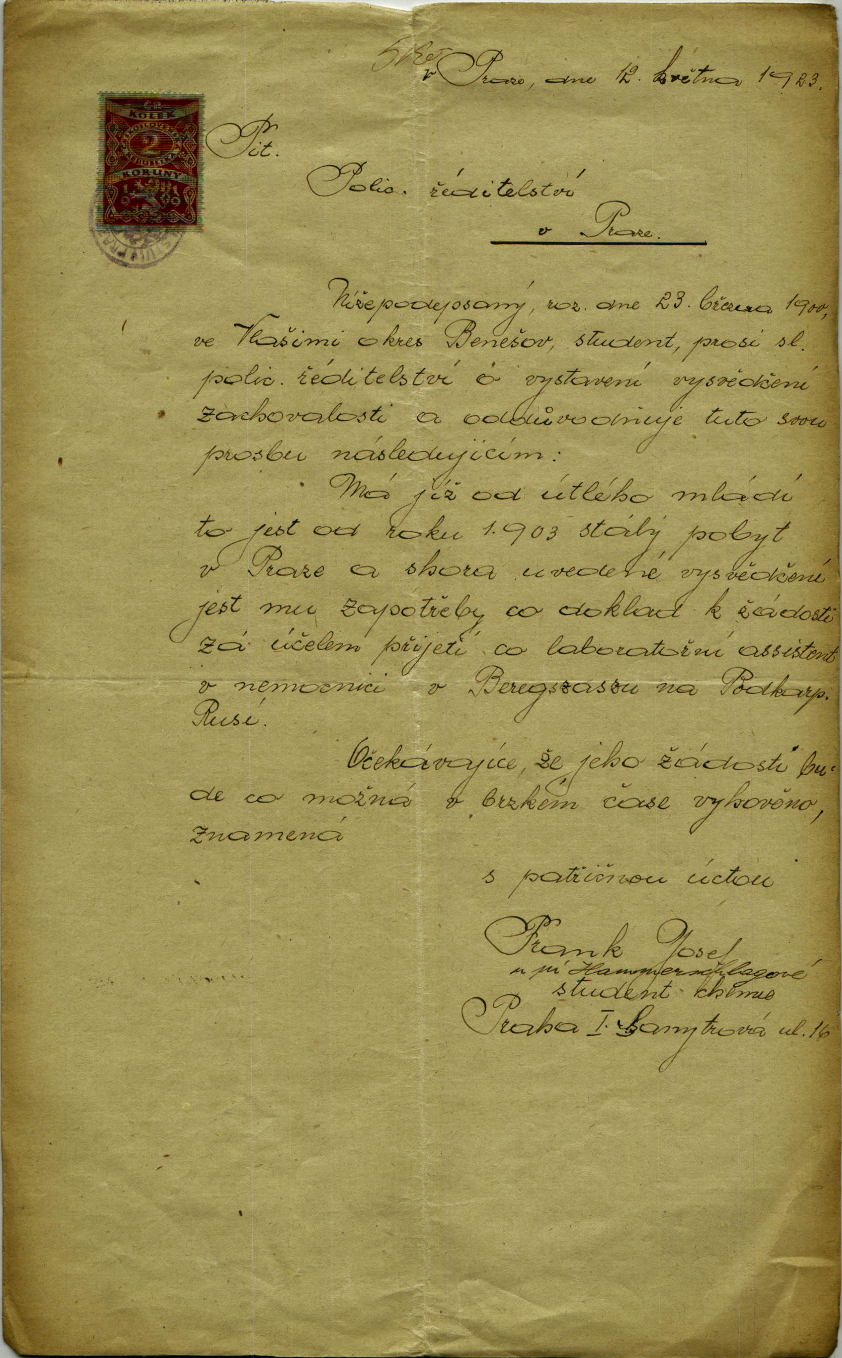 Frank Josef: Žádost o vystavení vysvědčení zachovalosti