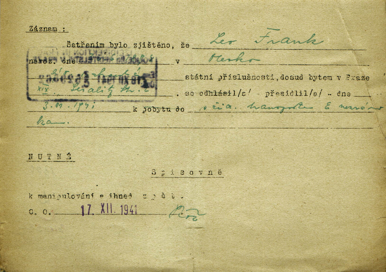 Frank Leo: Šetření o pobytu odtransportovaných Židů