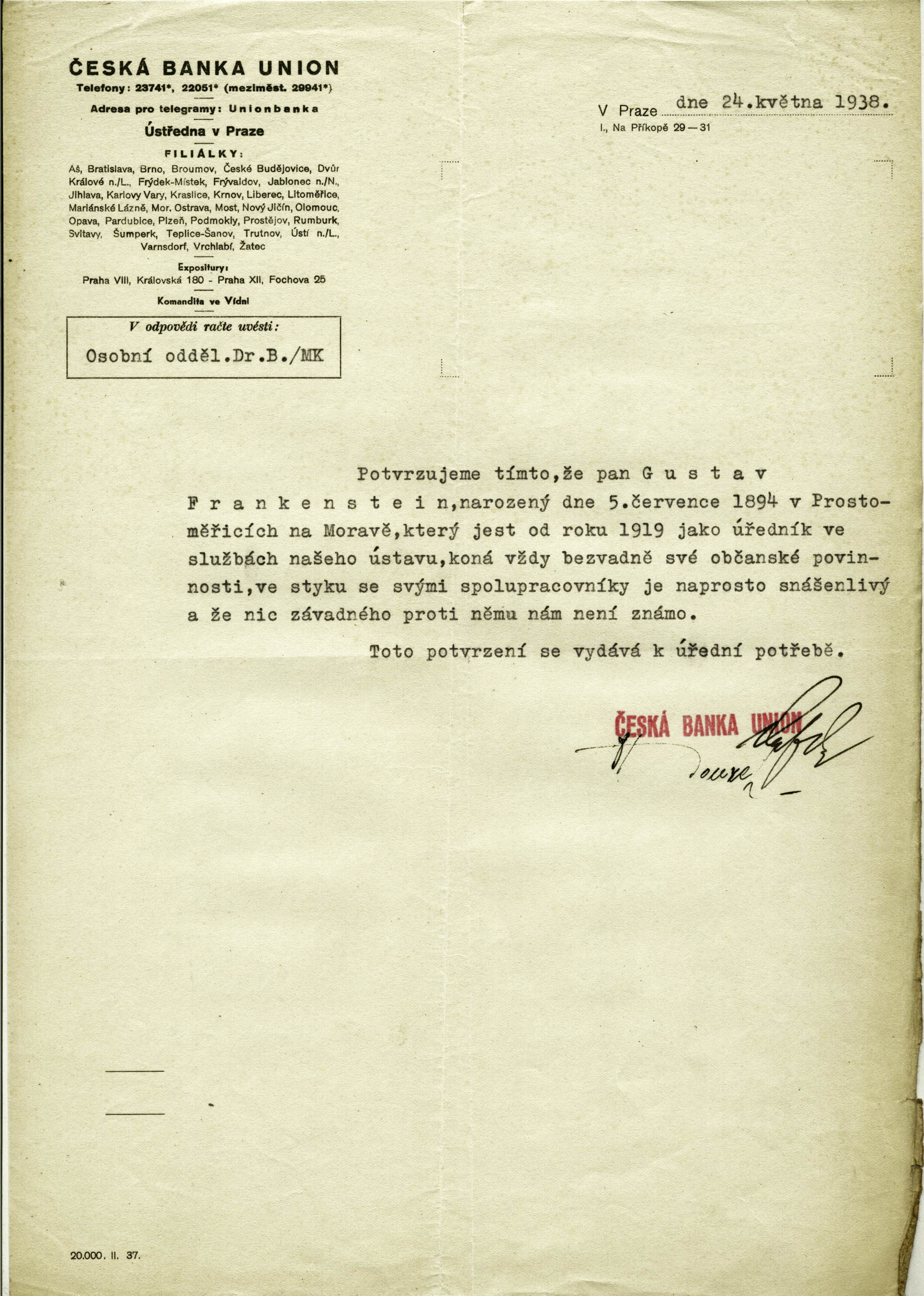 Frankenstein Gustav: Potvrzení zaměstnavatele o zachovalosti