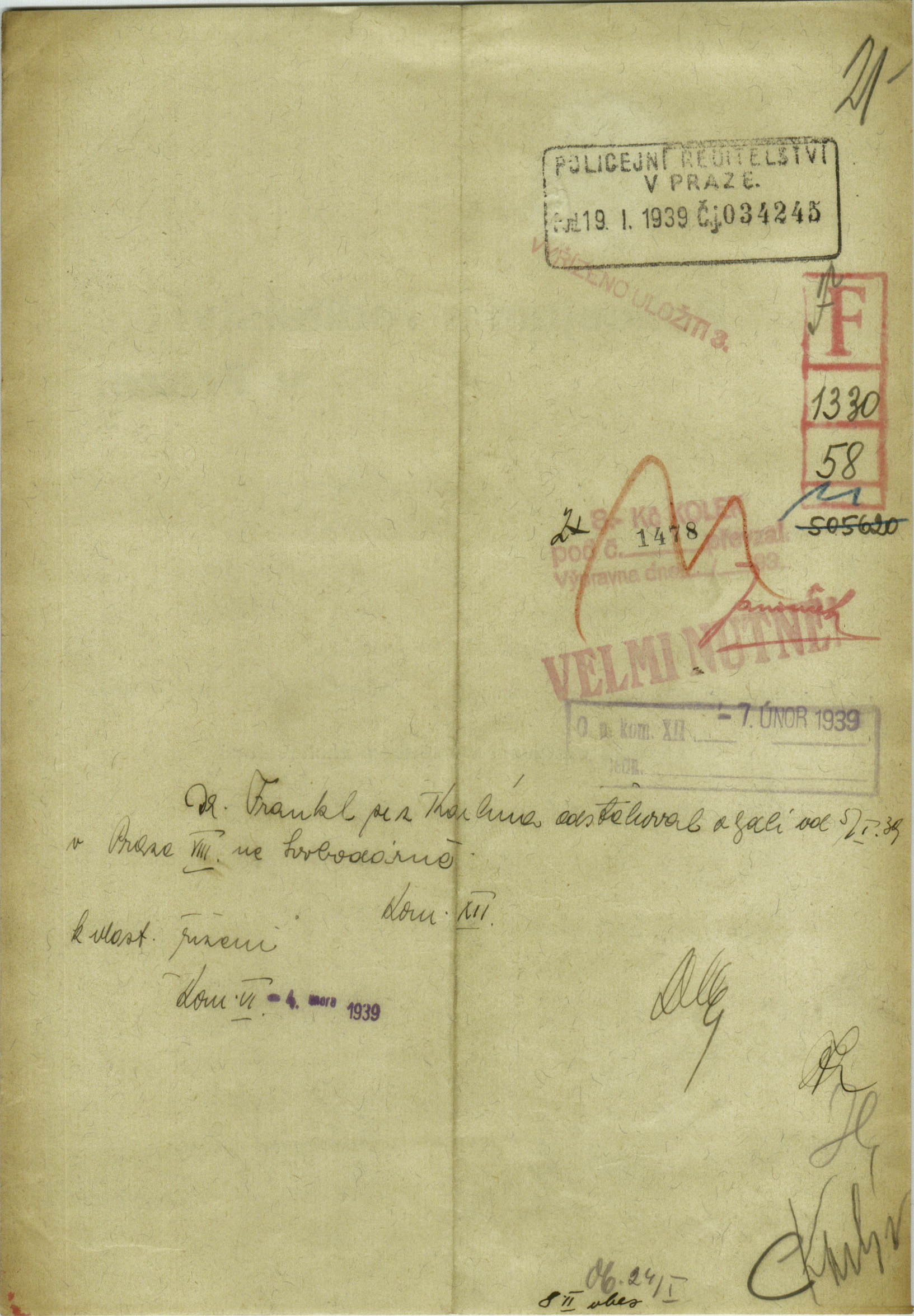 Frankl Otto: Žádost o vystavení vysvědčení zachovalosti