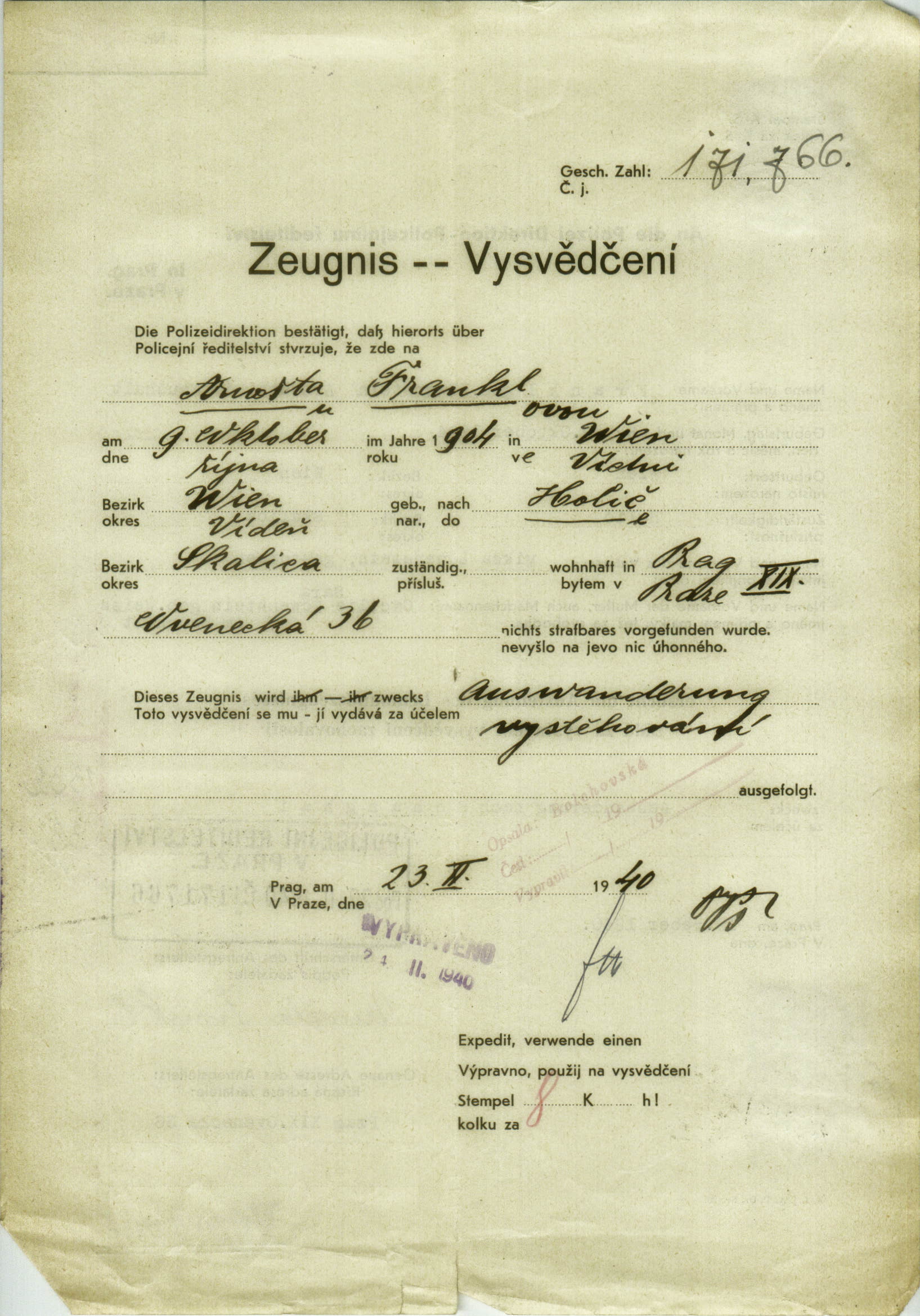 Franklová Arnoštka: Vysvědčení zachovalosti