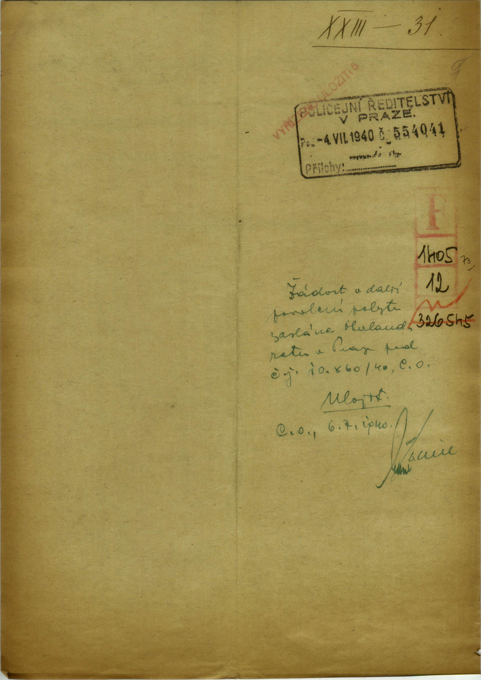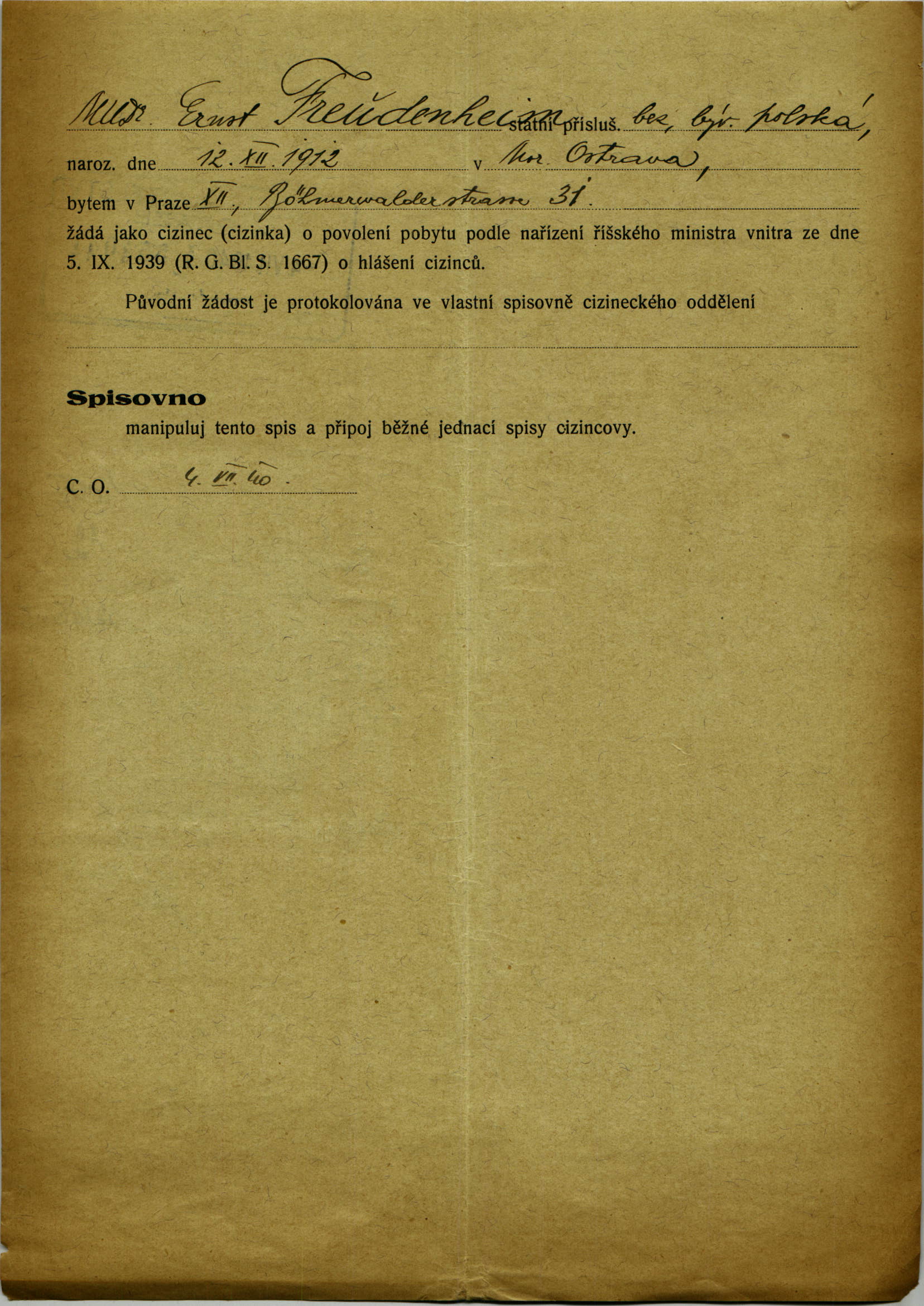 Freudenheim Arnošt: Žádost o povolení pobytu
