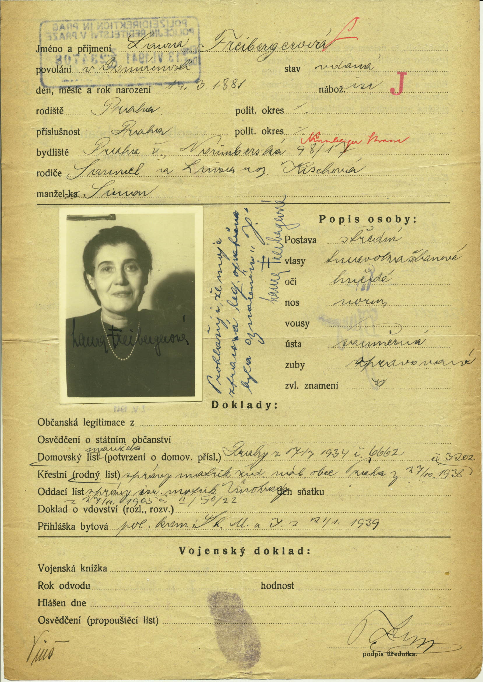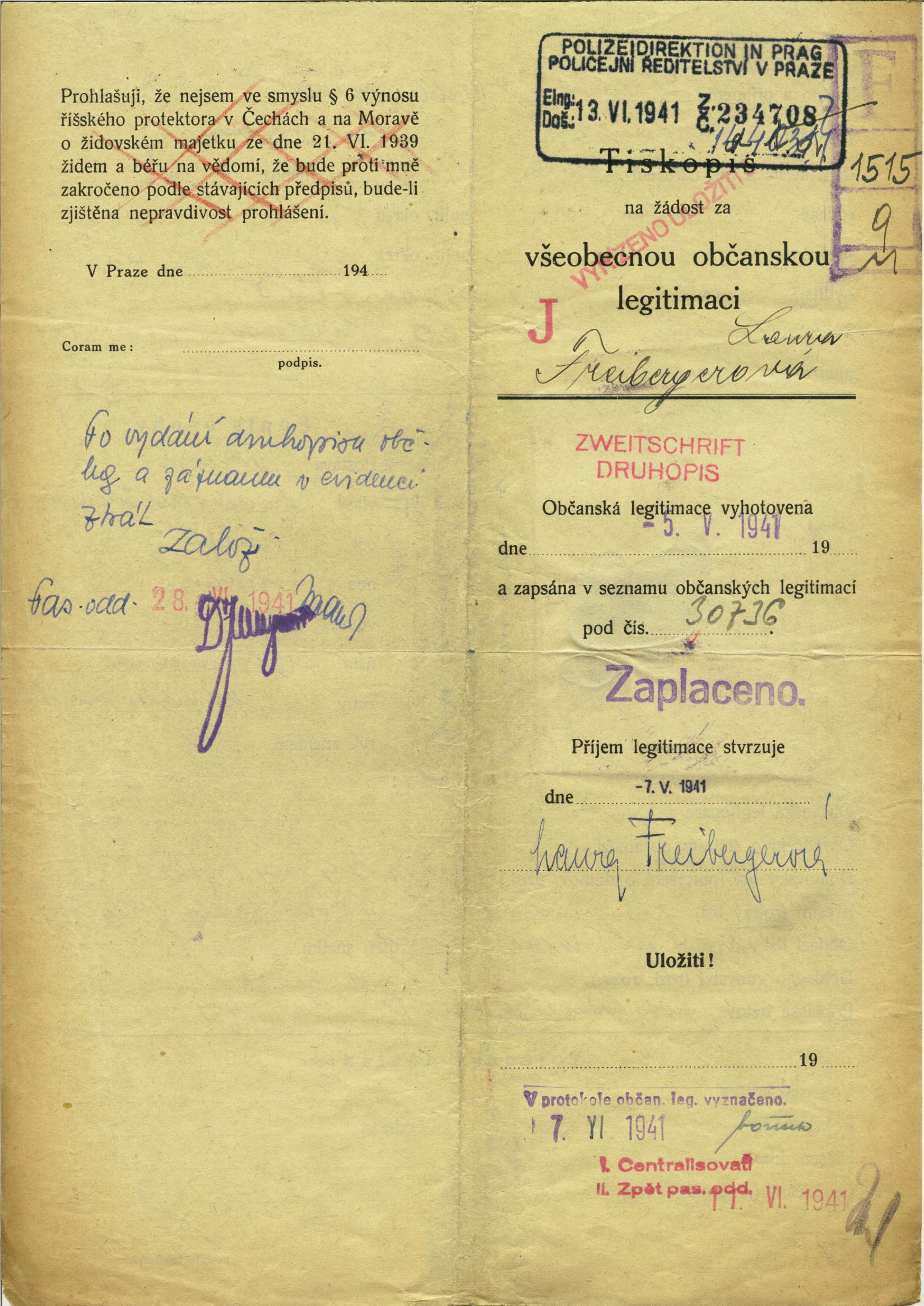 Freibergerová Laura: Žádost o vydání občanské legitimace