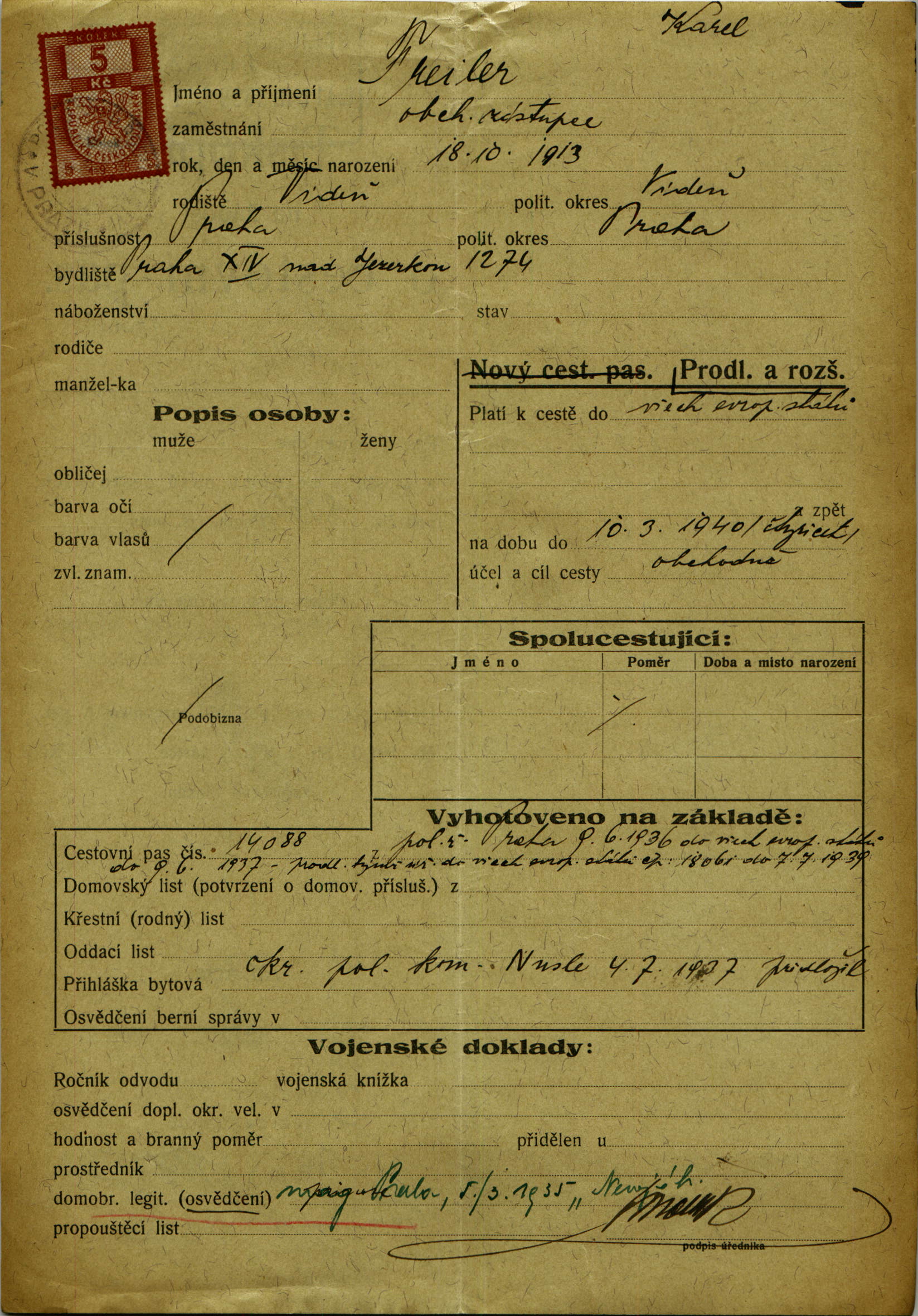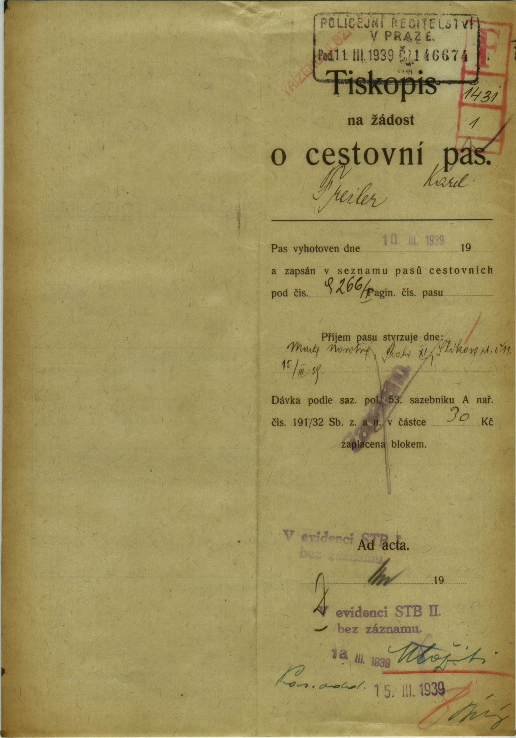 Freiler Karel: Žádost o změnu v cestovním pasu