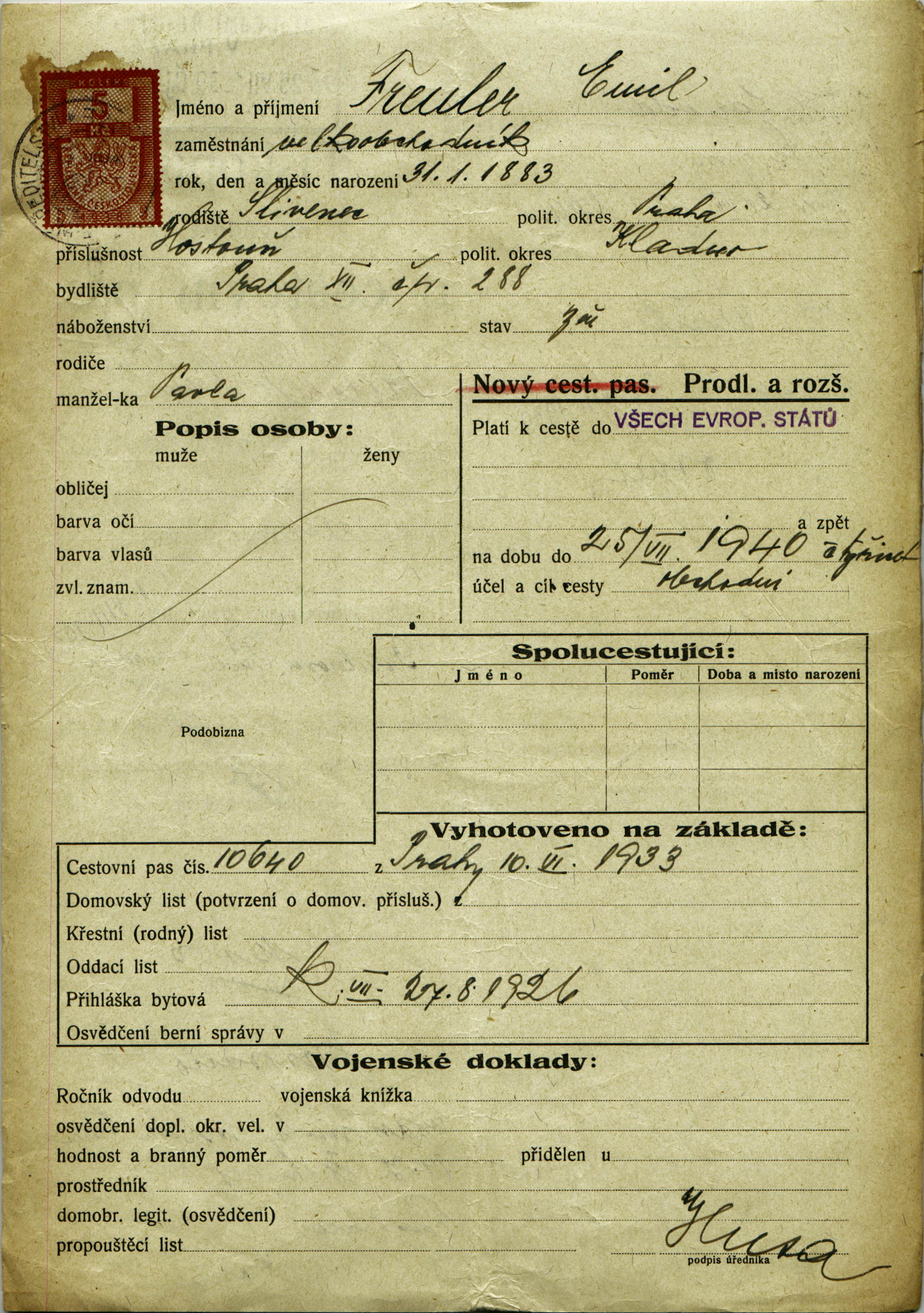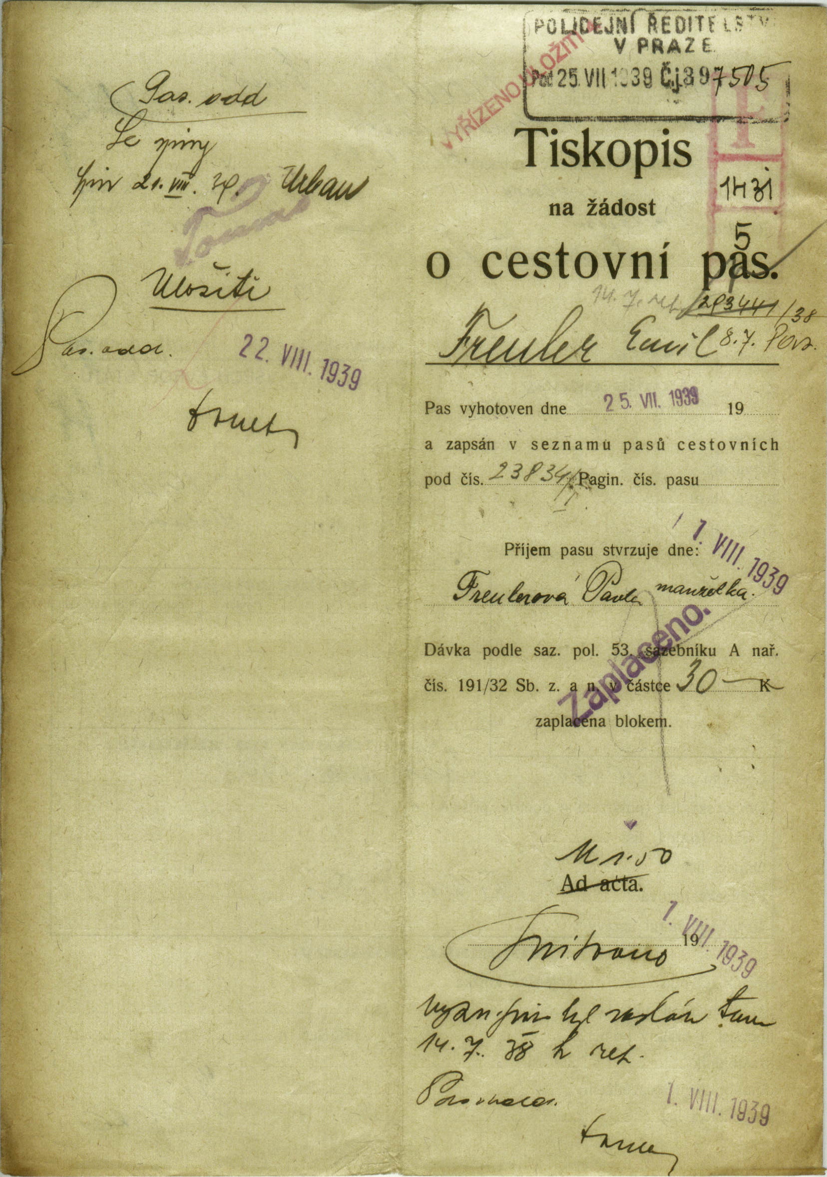 Freiler Emil: Žádost o změnu v cestovním pasu