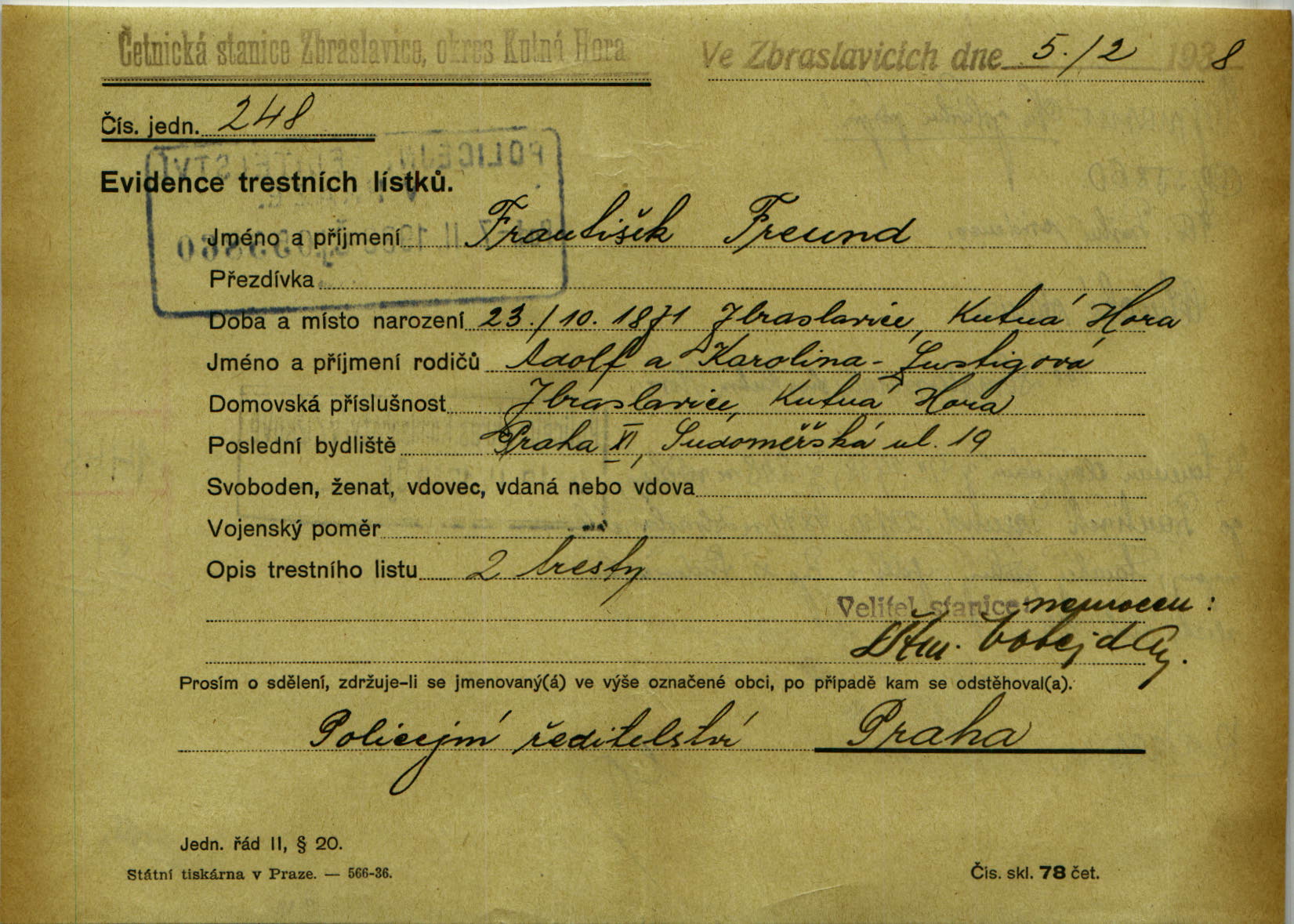 Národní archiv Praha > Policejní ředitelství v Praze > 1941-1950 > F > Freund František