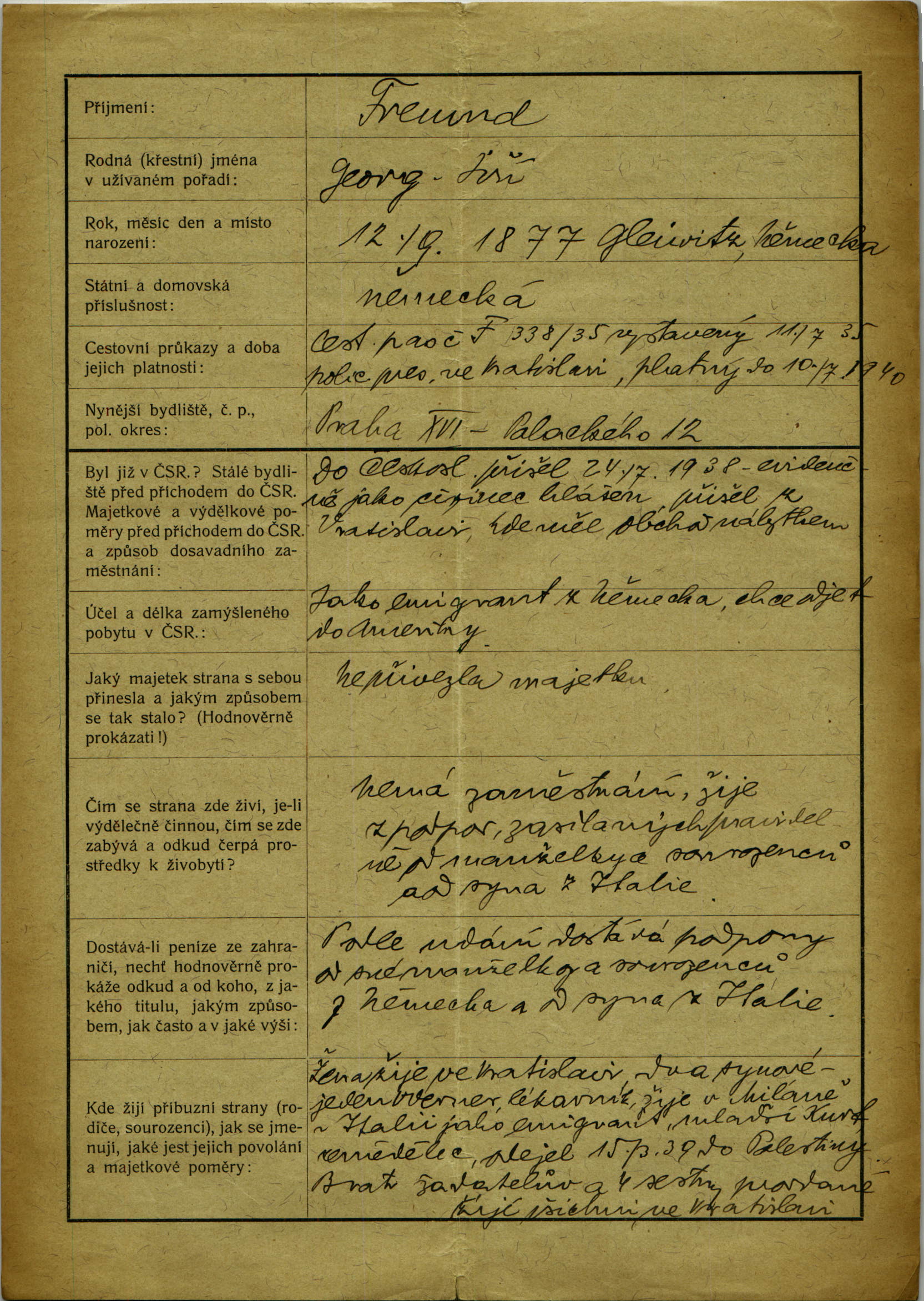 Národní archiv Praha > Policejní ředitelství v Praze > 1941-1950 > F > Freund Jiří