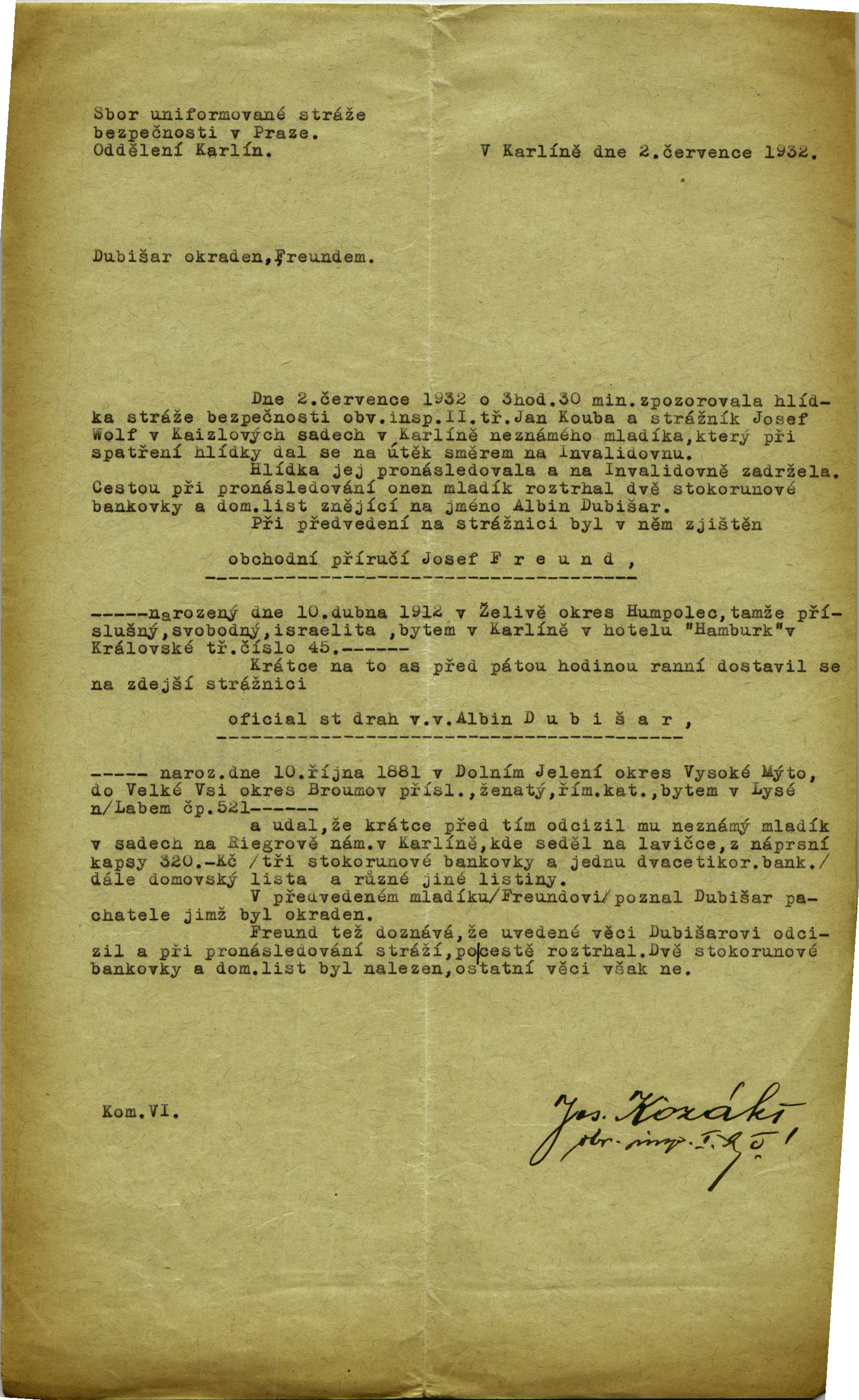 Národní archiv Praha > Policejní ředitelství v Praze > 1941-1950 > F > Freund Josef