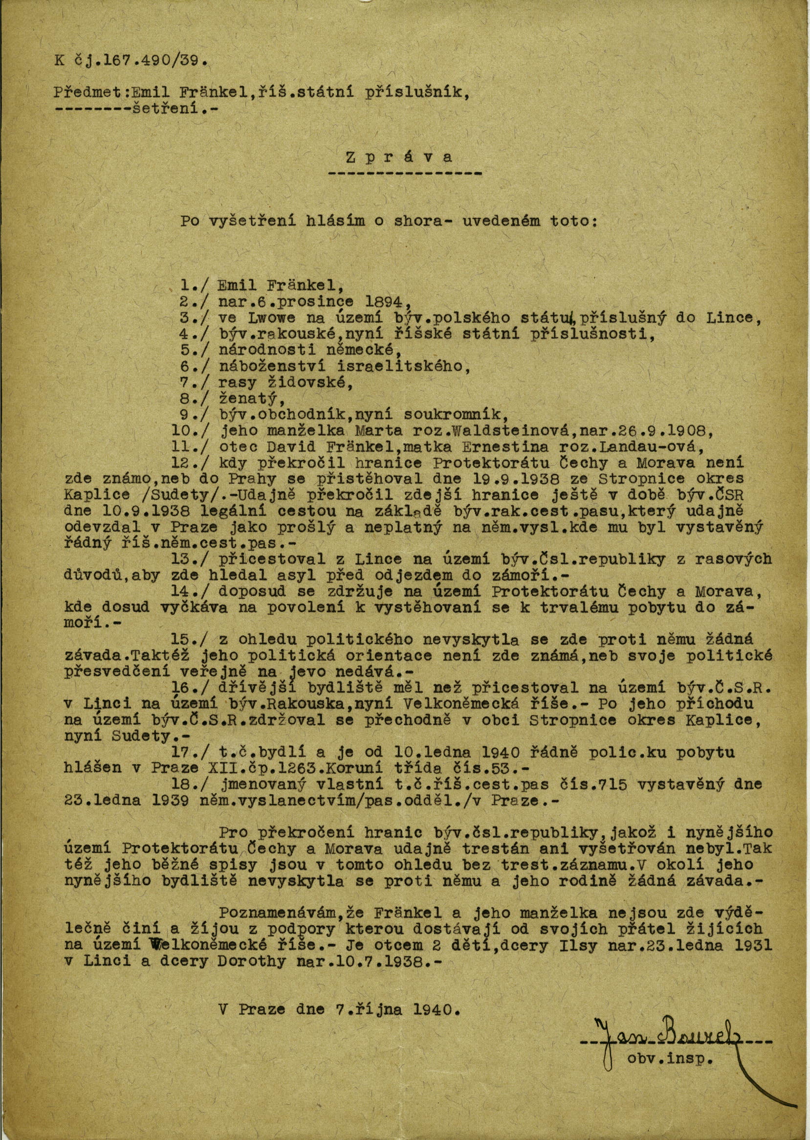 Fränkel Emil: Zpráva o uprchlíkovi z Německa