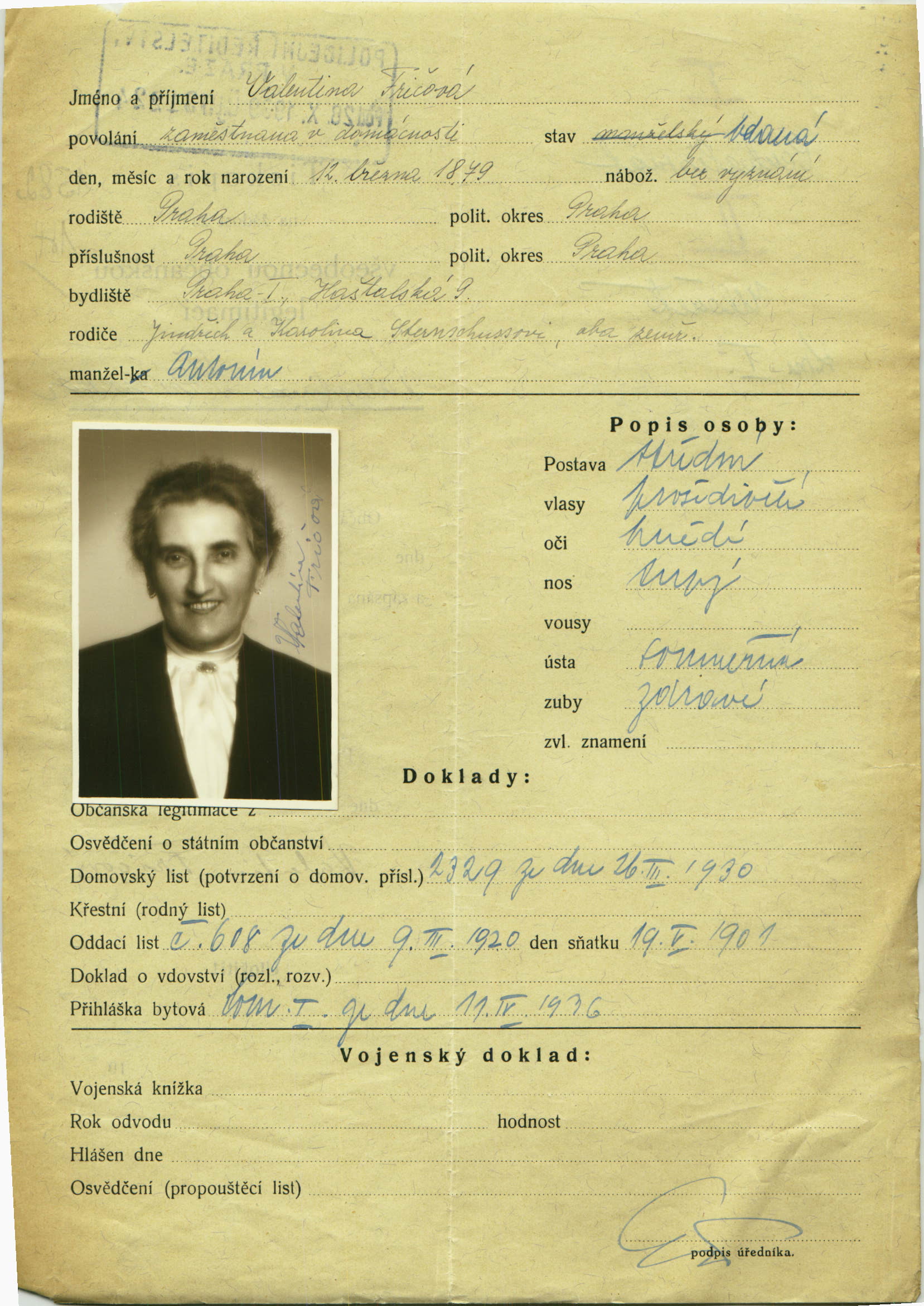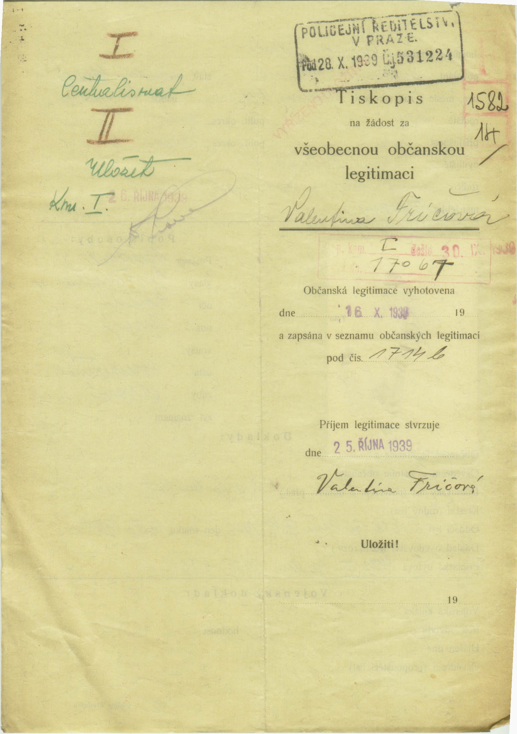 Fričová Valentina: Žádost o vydání občanské legitimace