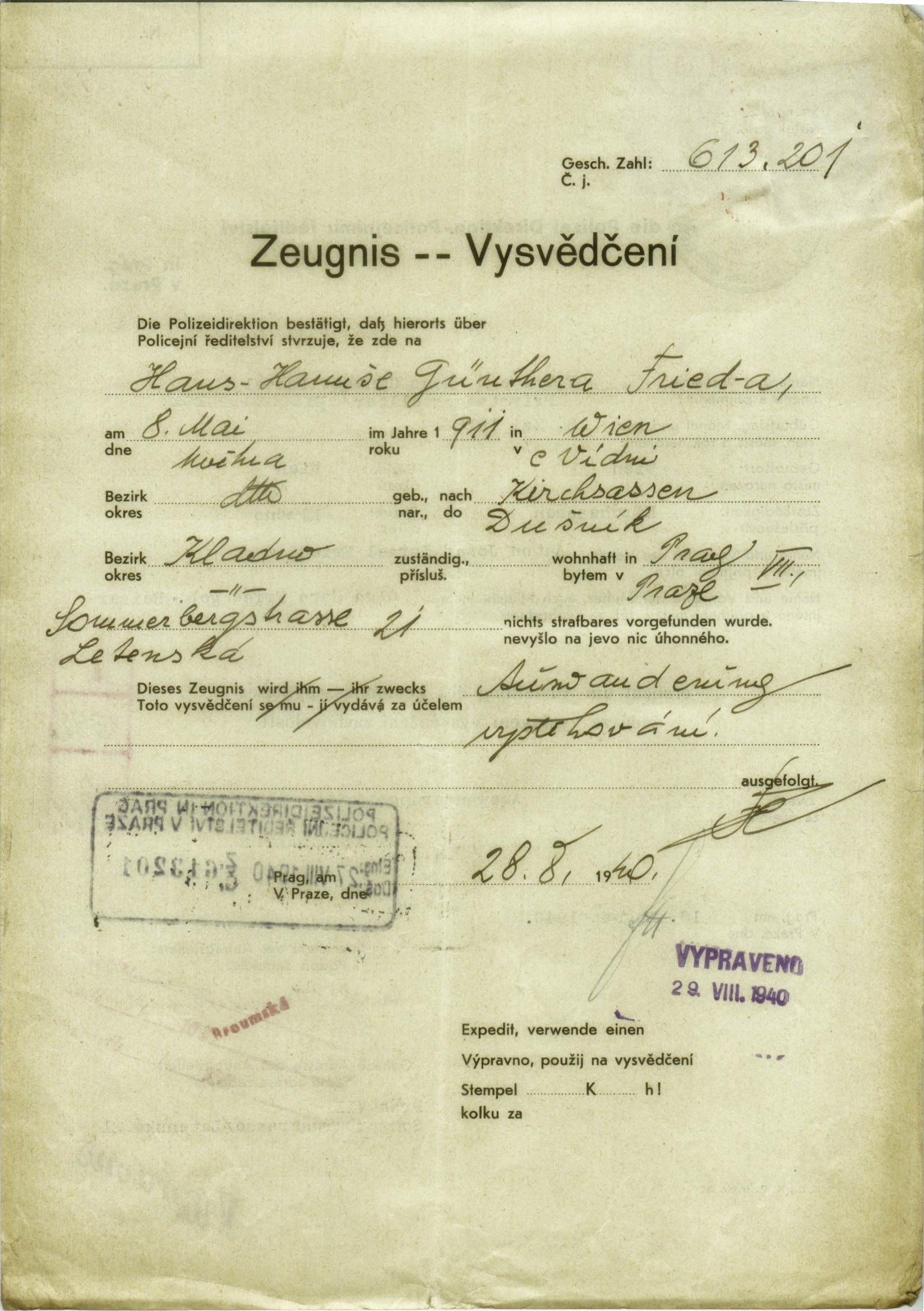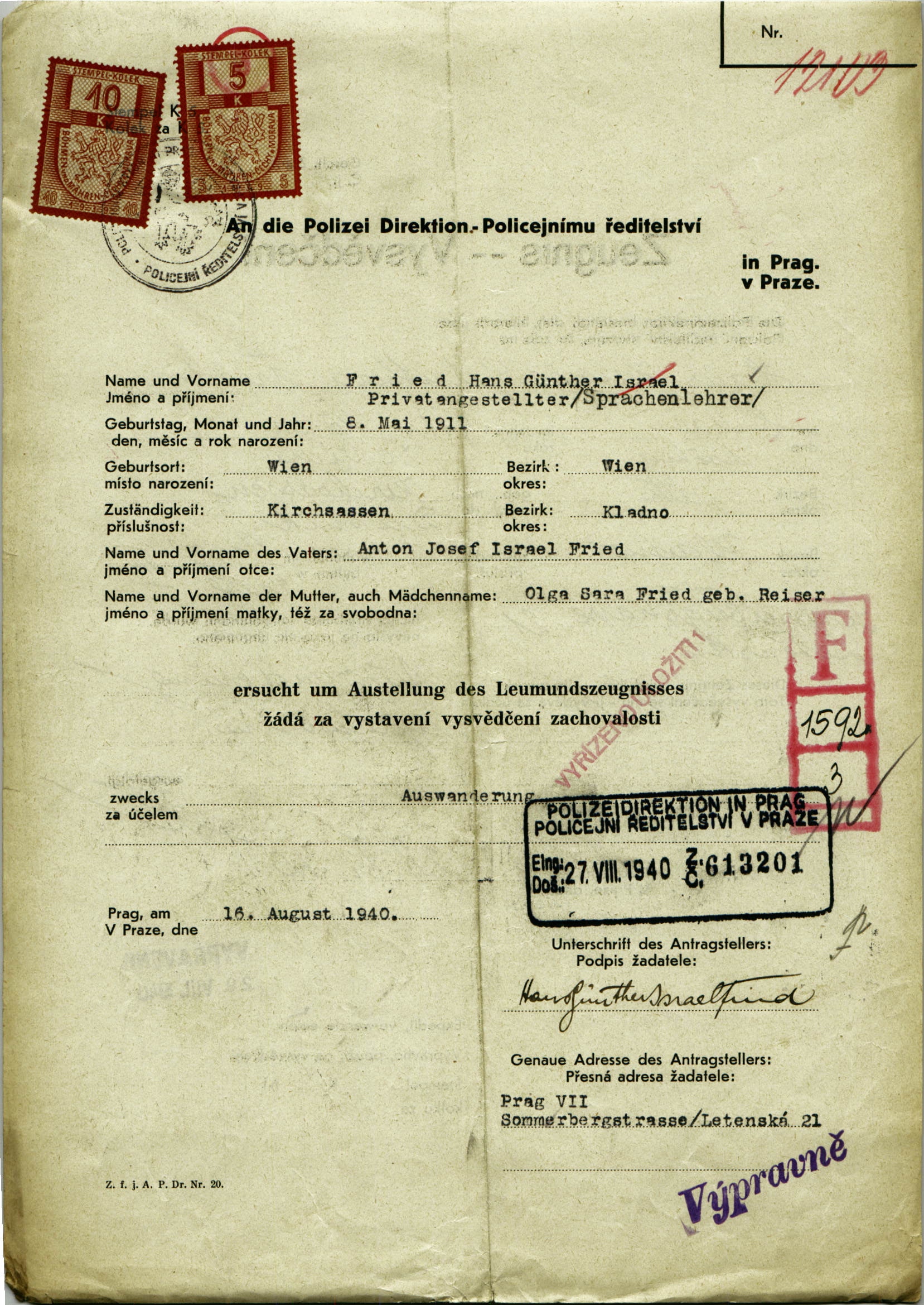 Fried Hanuš: Vysvědčení zachovalosti