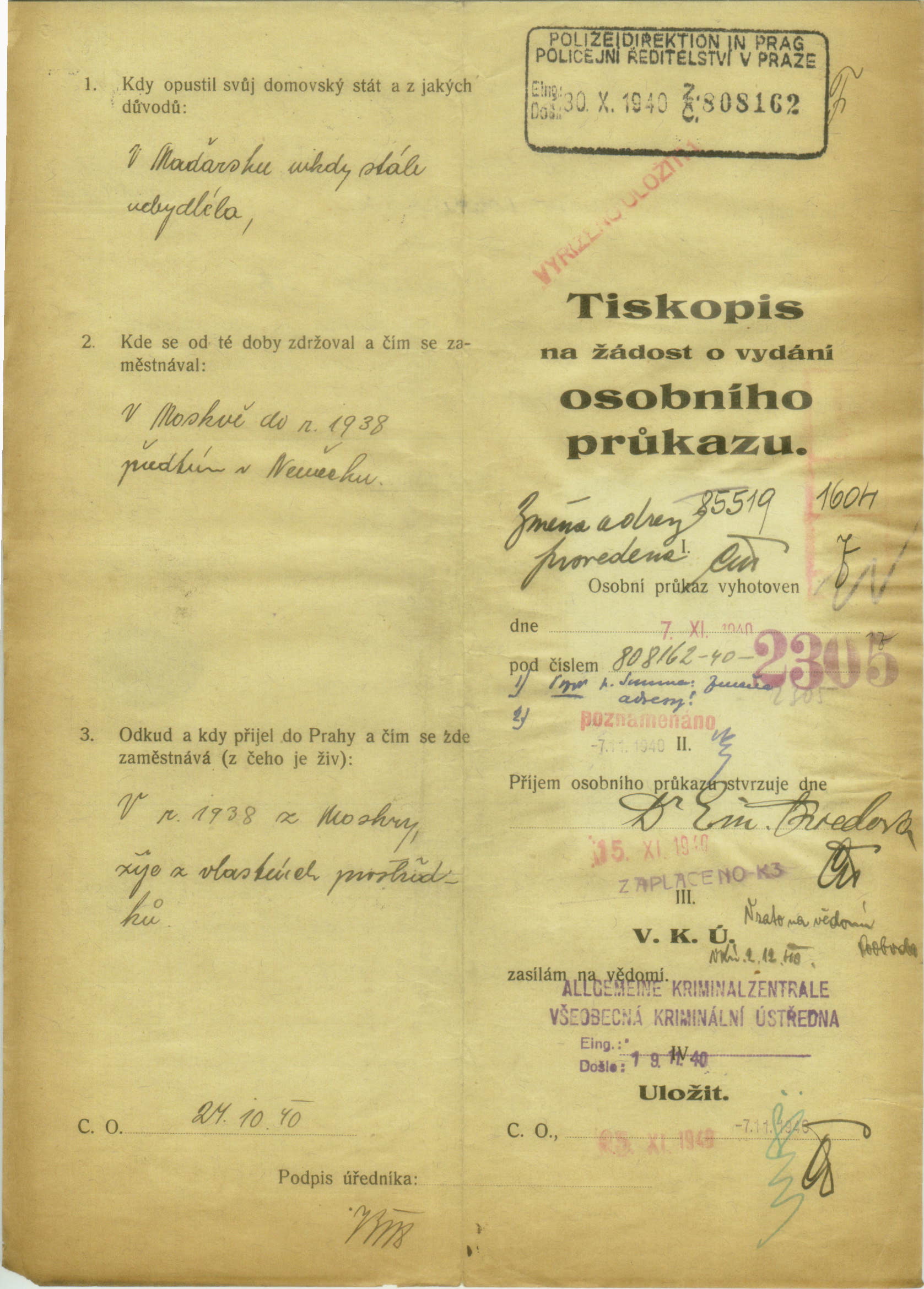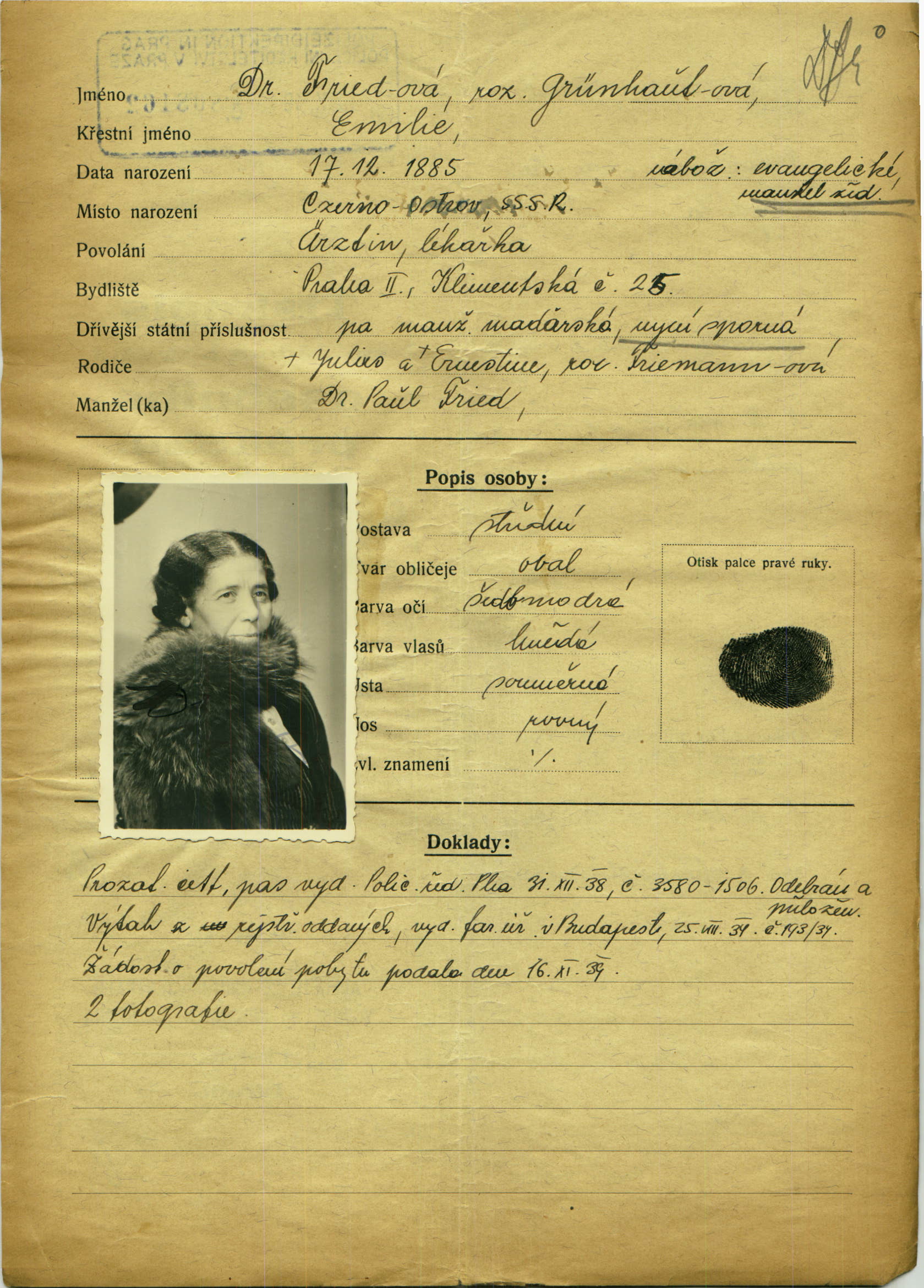 Friedová Emilie: Žádost o vydání občanské legitimace