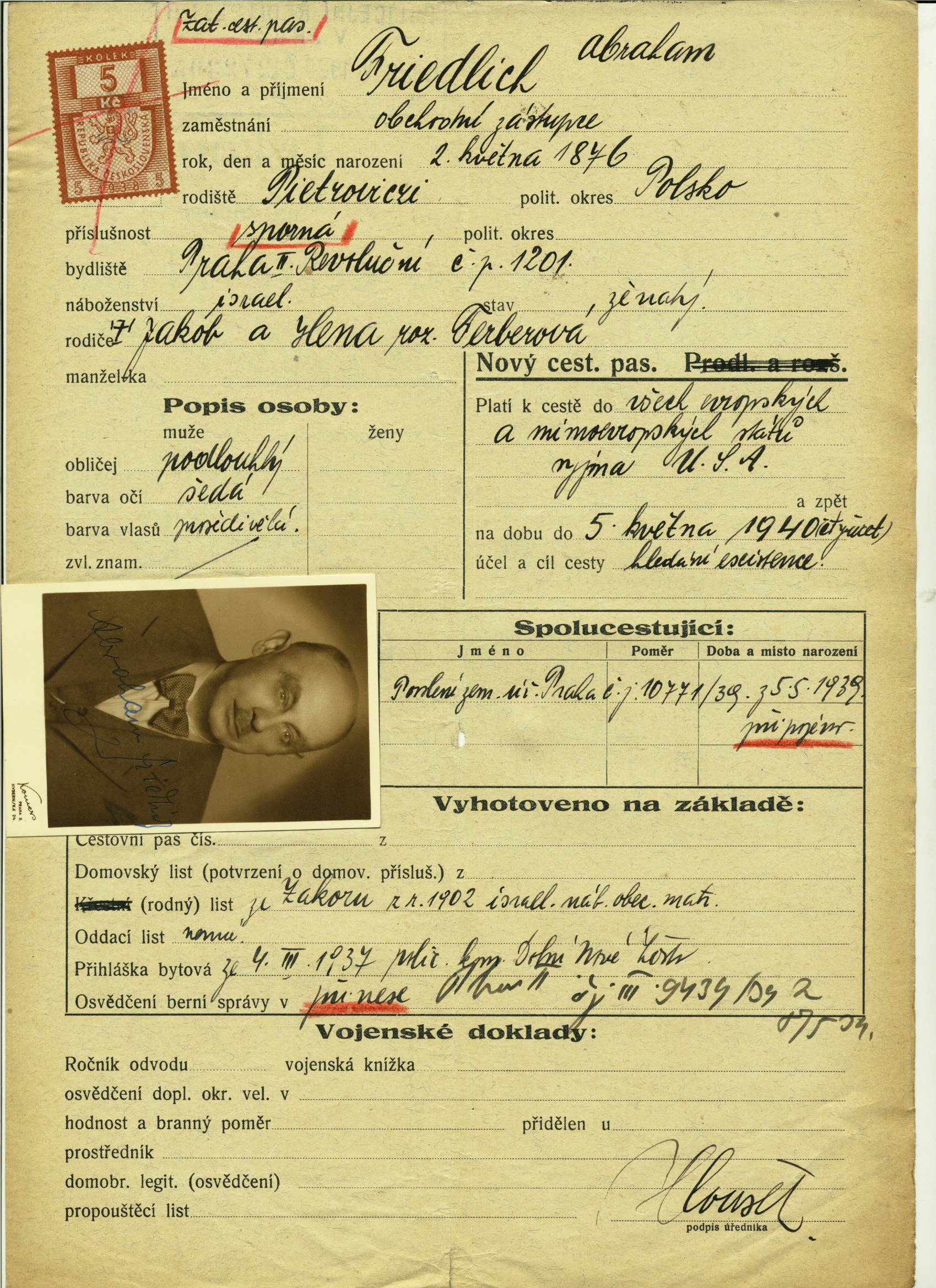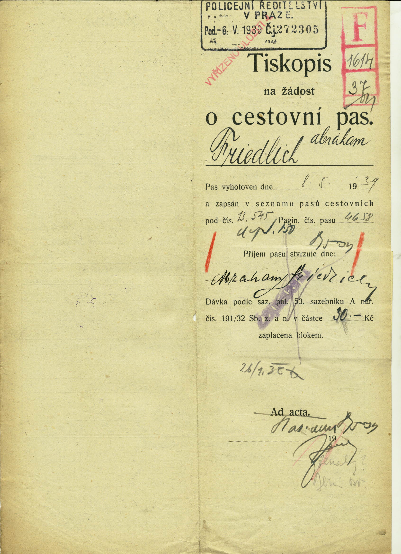 Friedlich Abraham: Žádost o vydání prozatímního cestovního pasu