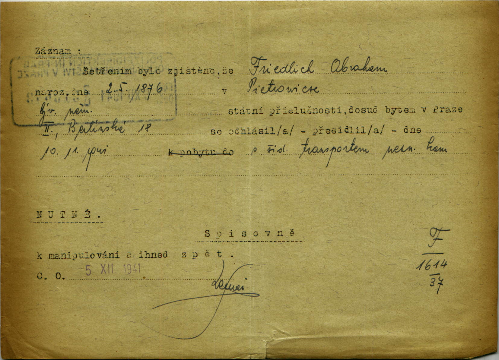 Friedlich Abraham: Šetření o pobytu odtransportovaných Židů