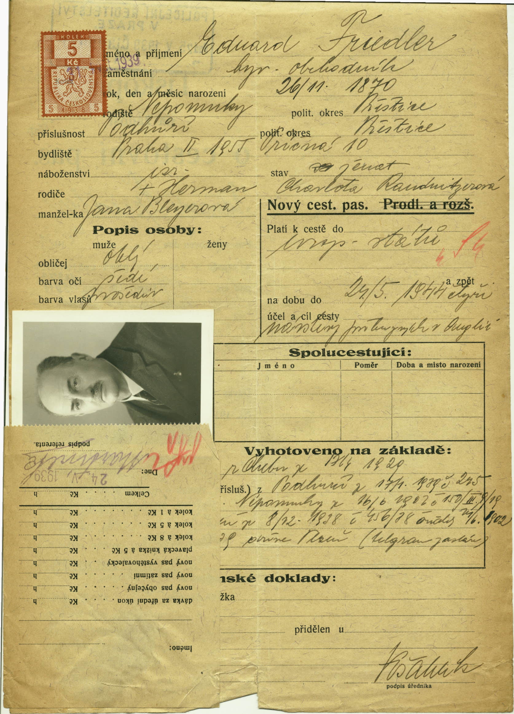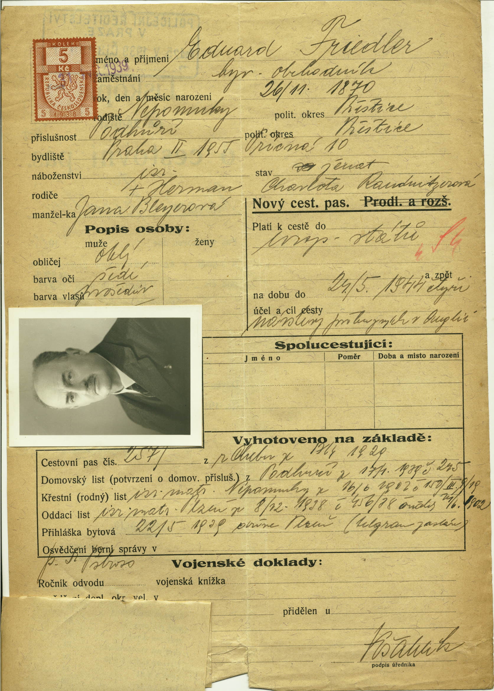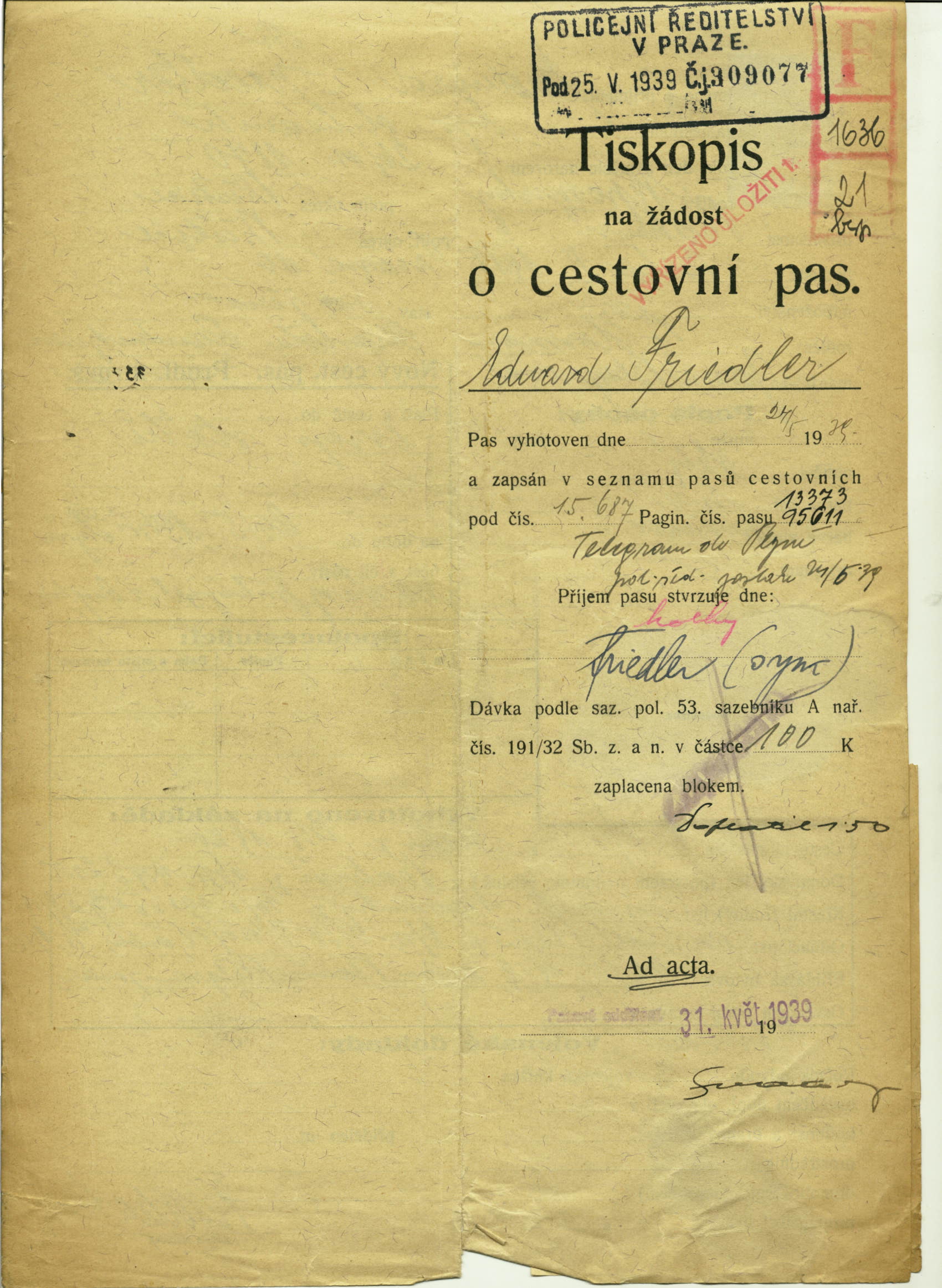 Friedler Edvard: Žádost o vydání cestovního pasu