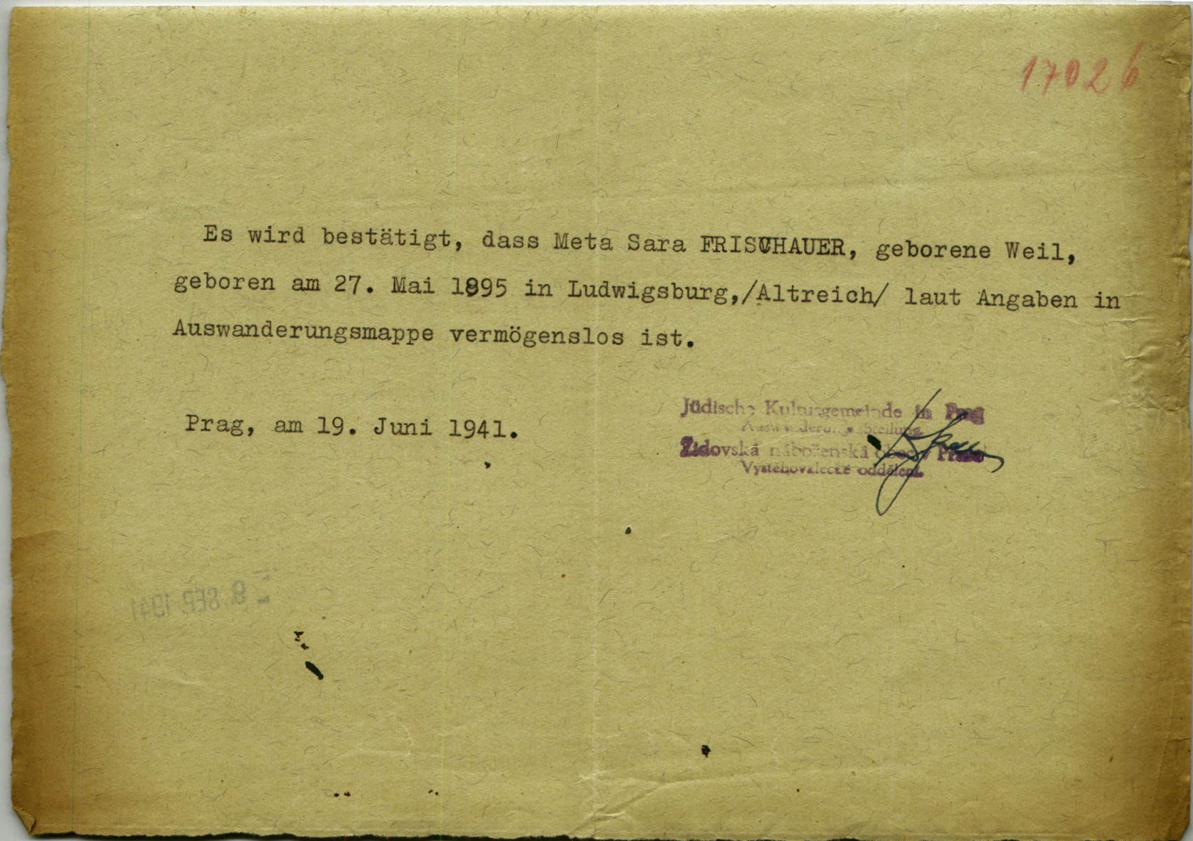 Frischauerová Meta: Potvrzení nemajetnosti