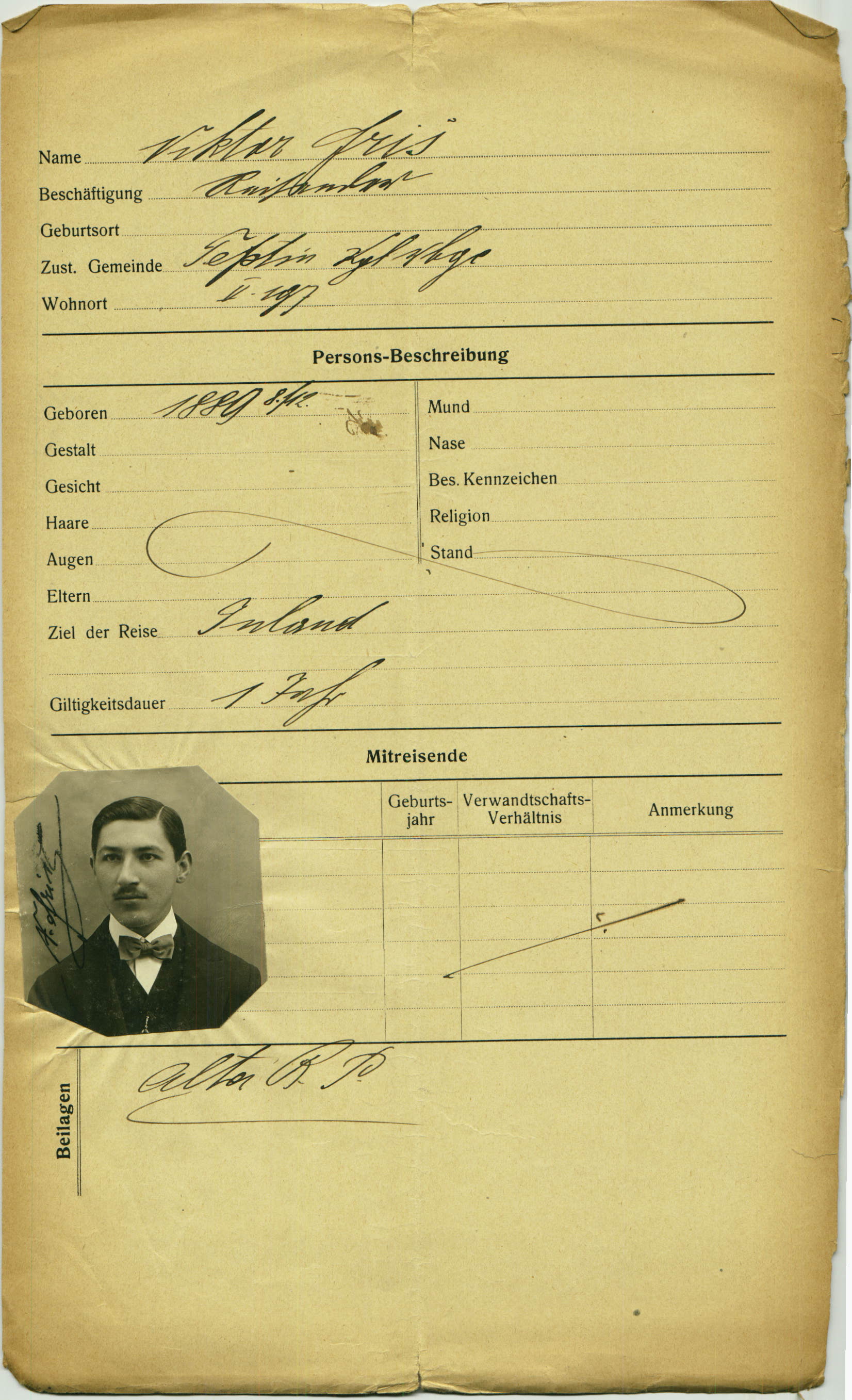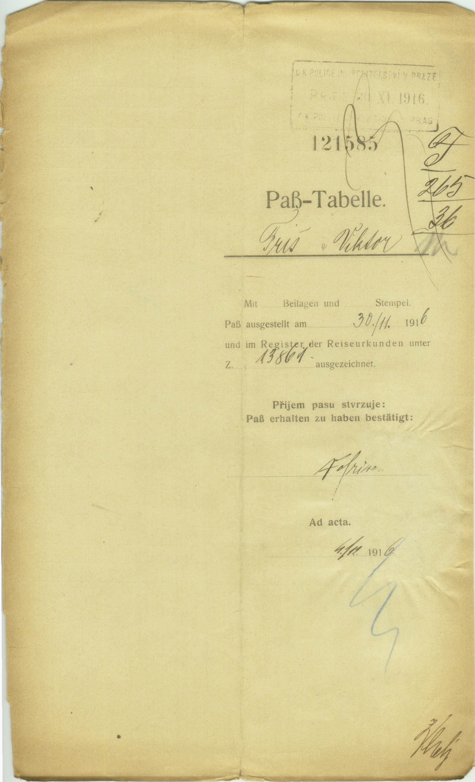 Frisch Viktor: Žádost o vydání cestovního pasu