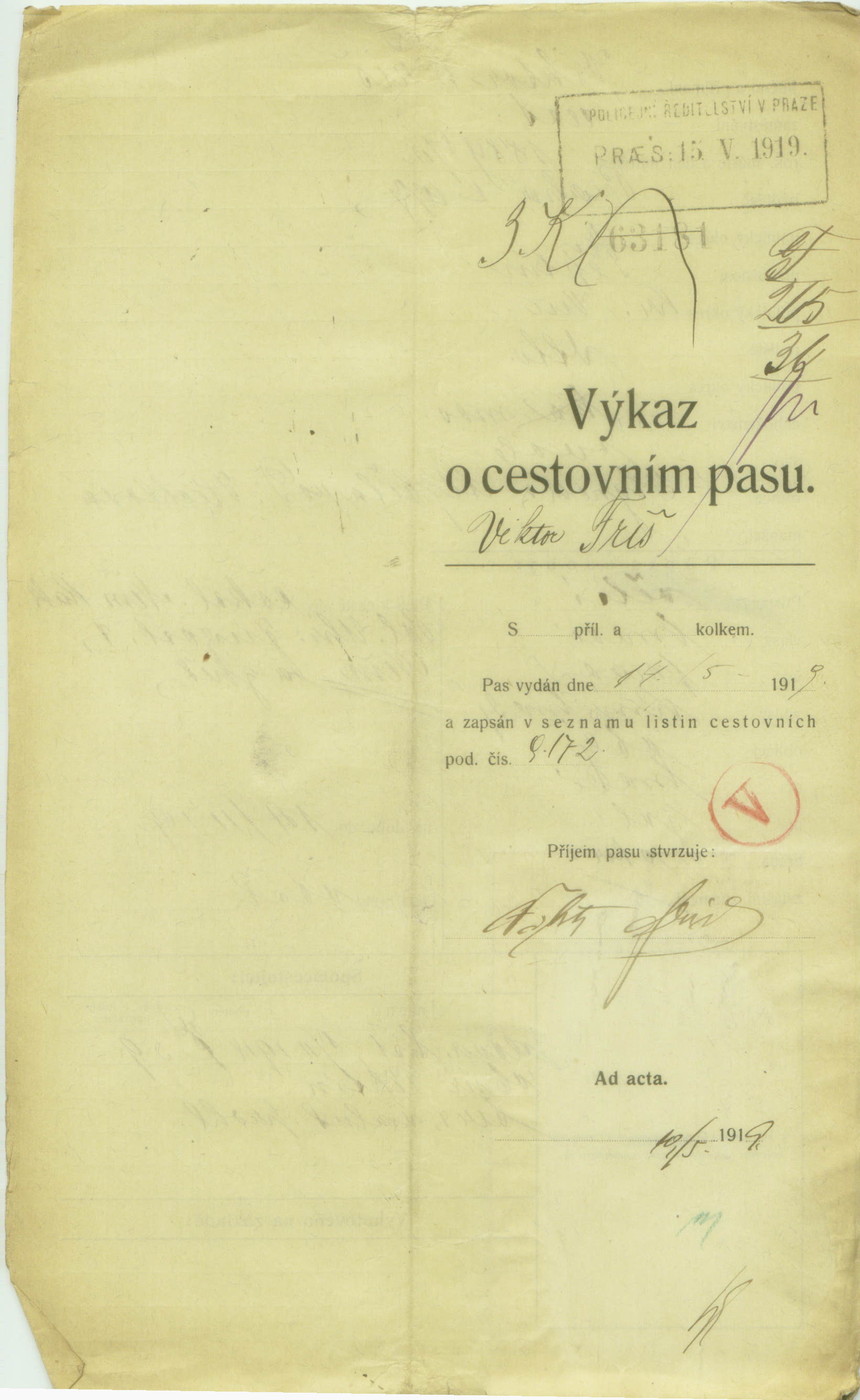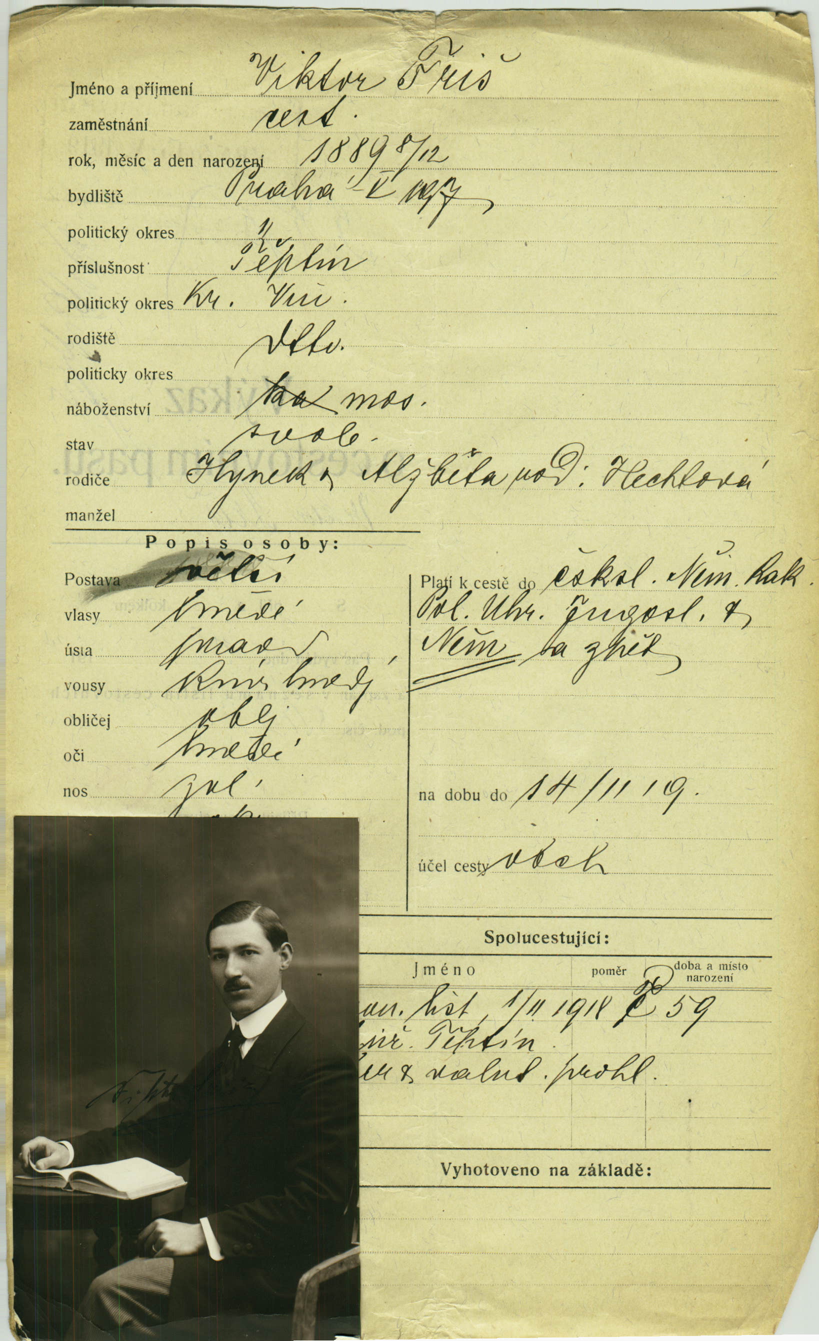 Frisch Viktor: Žádost o vydání cestovního pasu